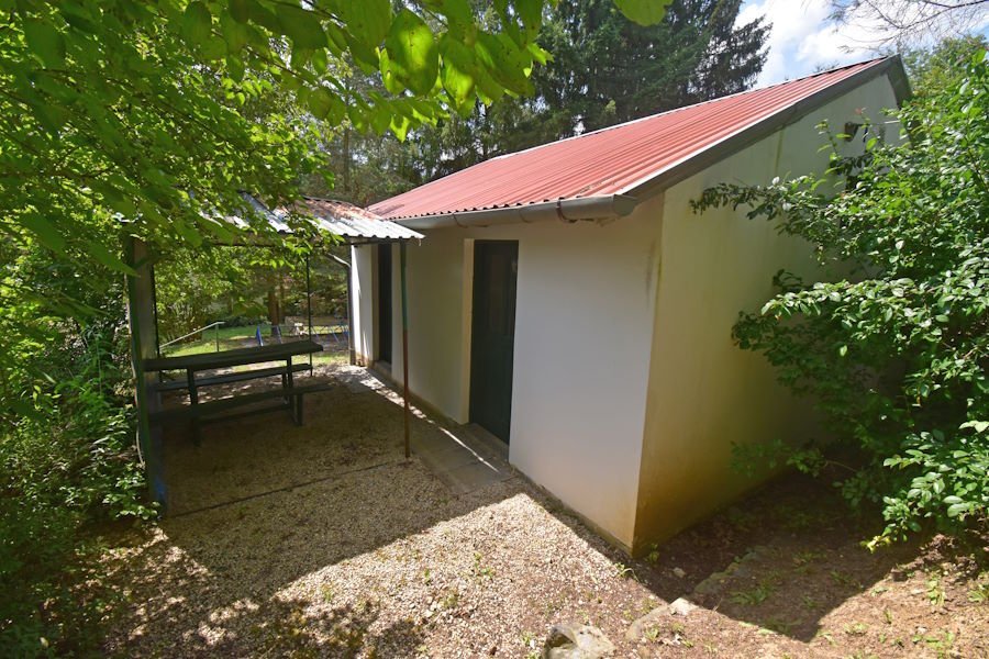 La parcela es de 2253 m2. El final de la propiedad es arbolado. Hay una superficie cubierta de aproximadamente 80 m2 con bancos para unas 50 personas, una chimenea empotrada para teteras, un horno de cúpula y un horno de cerámica. El horno de alfarería es perfecto para organizar campamentos artesanales.