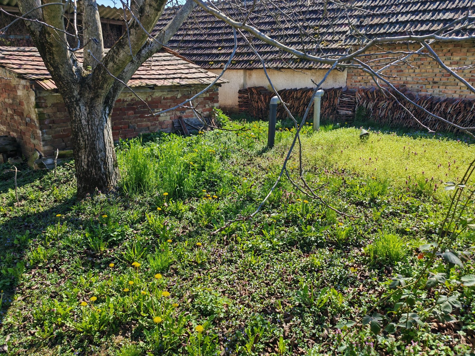 La propiedad relativamente amplia, con su gran sótano de tierra, ofrece muchas posibilidades de autosuficiencia.