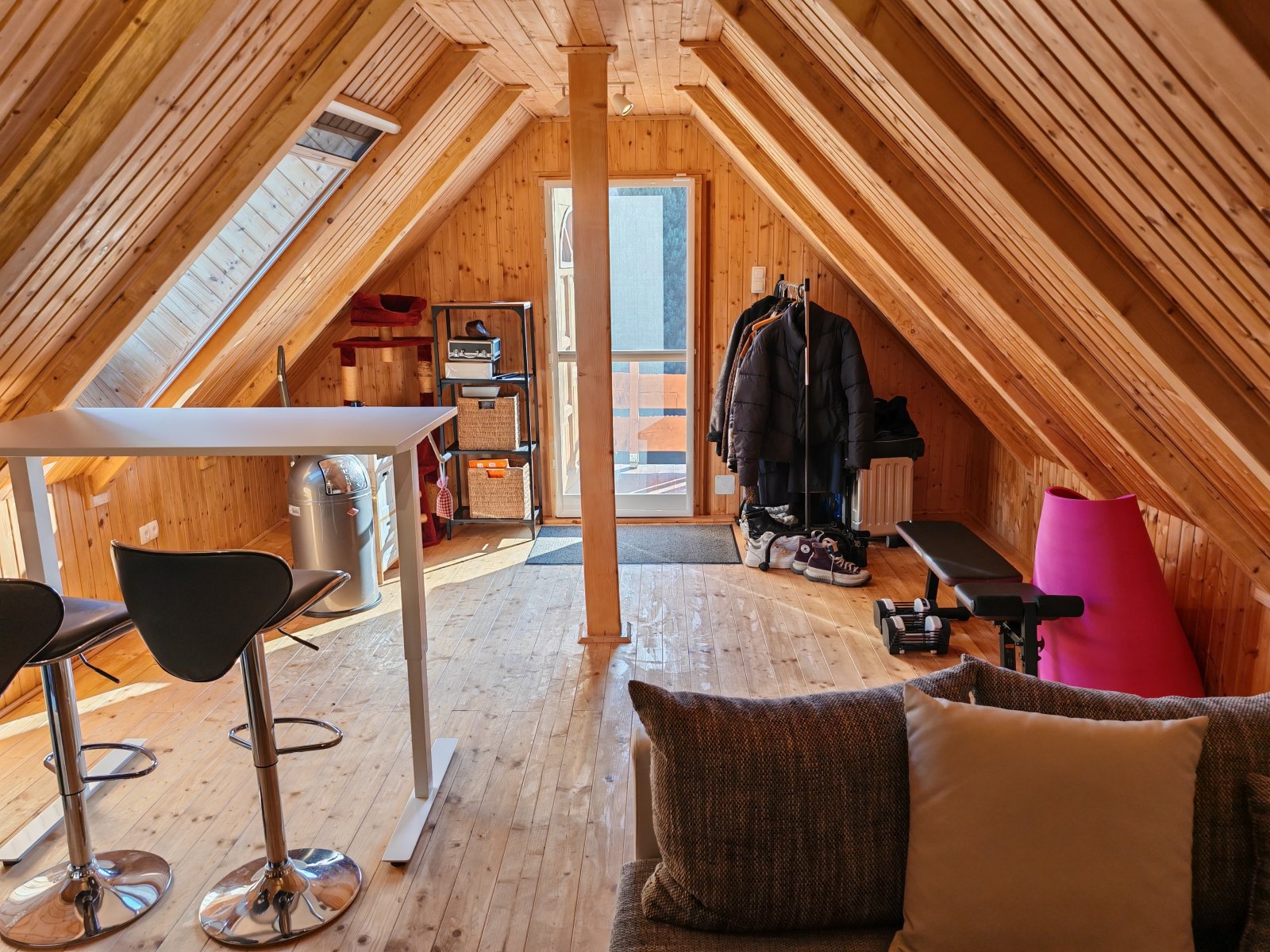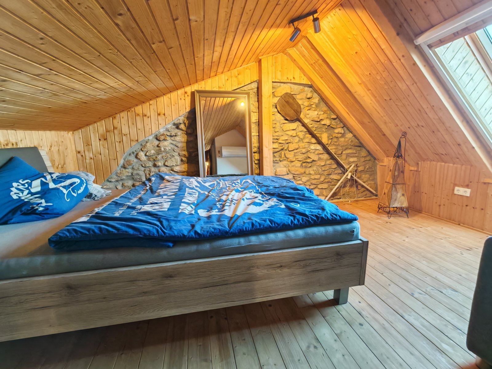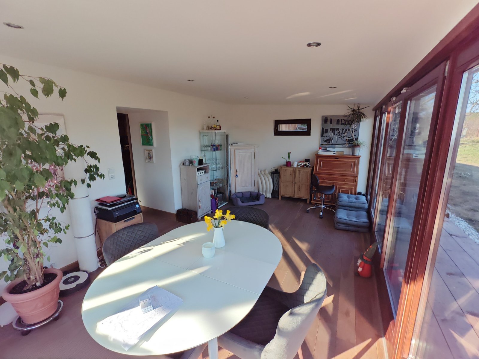 La propiedad tiene dos unidades residenciales independientes con un total de aprox. 130 m² de espacio habitable incluyendo jardín de invierno más aprox. 30 m² de terraza (planta baja 80 m² con 3 habitaciones incluyendo jardín de invierno, planta superior 50 m² con 2 habitaciones), 3 baños (un baño, dos cuartos de ducha), cocina de palets integrada y una chimenea/estufa sueca con aprox. 6 kw de potencia calorífica.