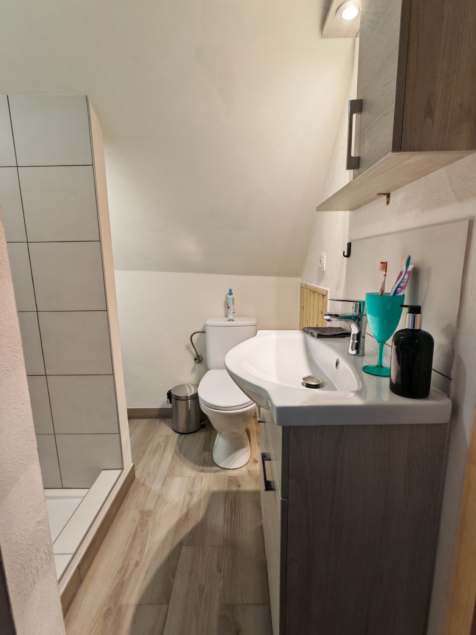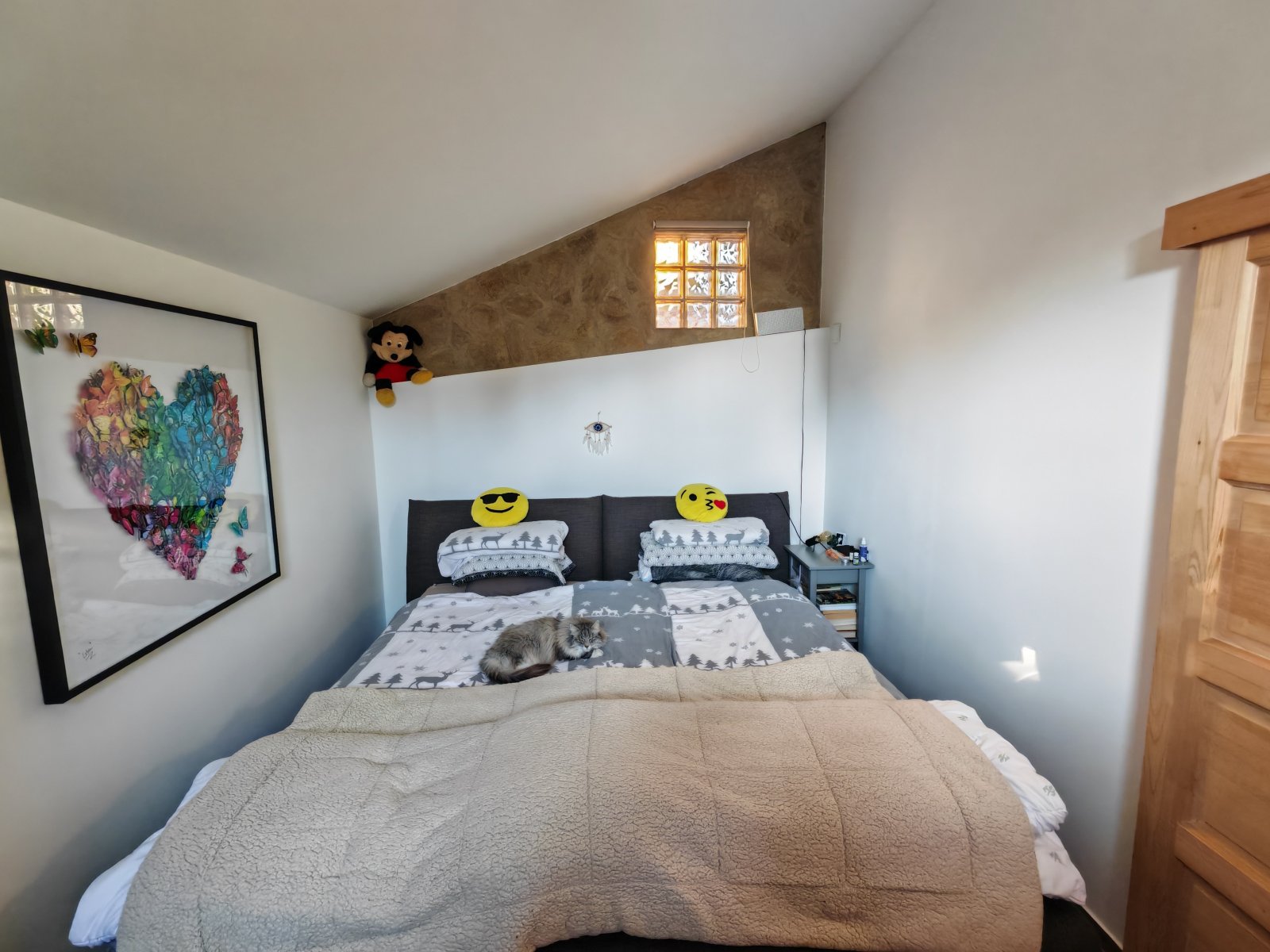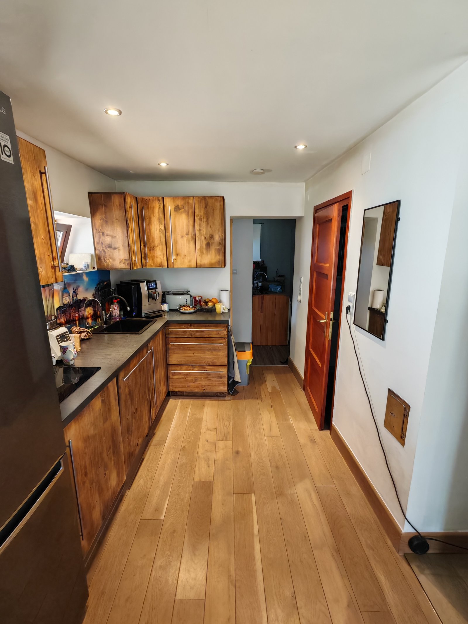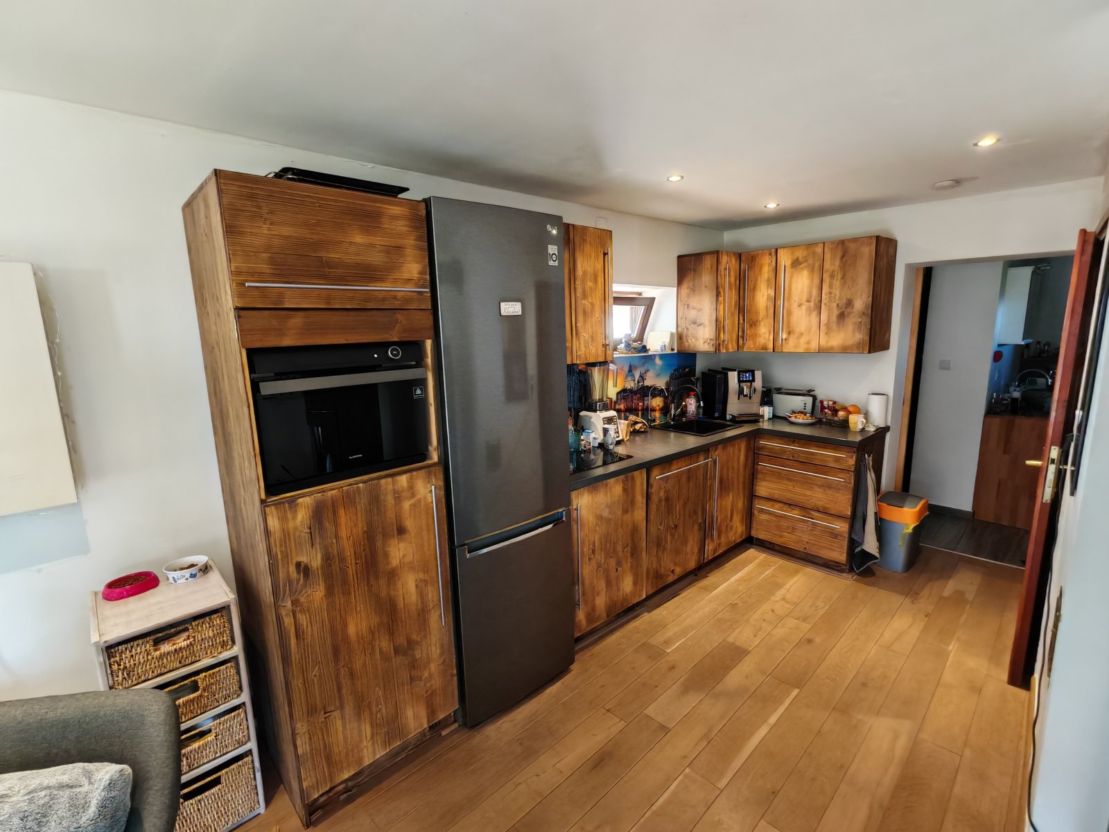 La propiedad tiene dos unidades residenciales independientes con un total de aprox. 130 m² de espacio habitable incluyendo jardín de invierno más aprox. 30 m² de terraza (planta baja 80 m² con 3 habitaciones incluyendo jardín de invierno, planta superior 50 m² con 2 habitaciones), 3 baños (un baño, dos cuartos de ducha), cocina de palets integrada y una chimenea/estufa sueca con aprox. 6 kw de potencia calorífica.