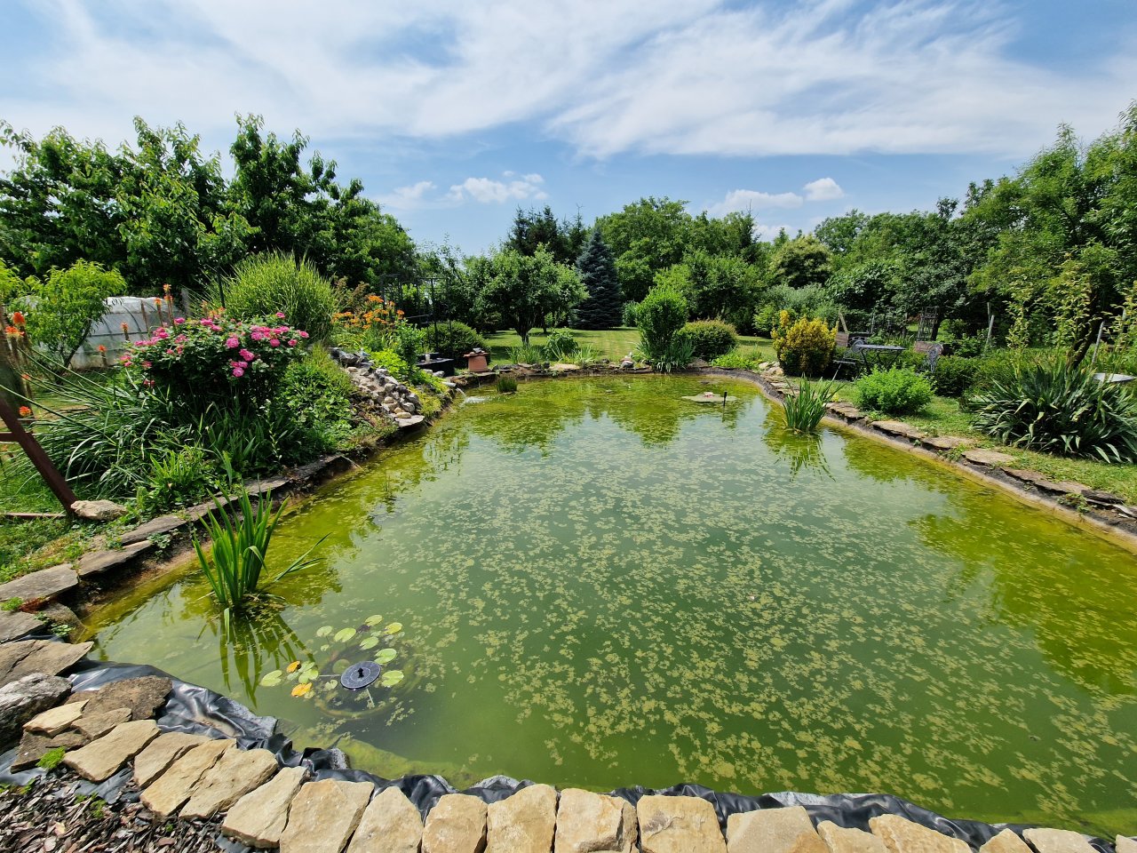 - un estanque koi que se alimenta convenientemente con agua de pozo y tiene un sistema de filtrado de alta calidad (12.000 litros/hora).