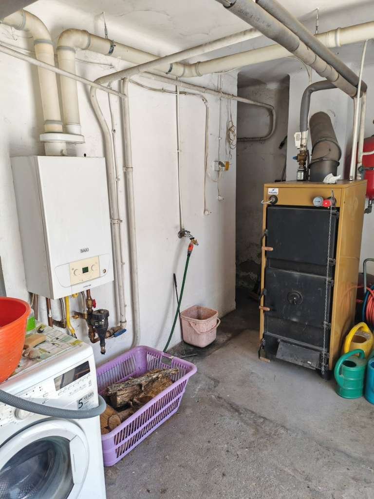 La casa cuenta con un amplio recibidor, salón-comedor, cocina, baño con inodoro y tres dormitorios. Una moderna caldera de condensación de gas, una caldera tipo Hajdú de alta calidad y una chimenea empotrada garantizan una calefacción confortable, mientras que el agua caliente se proporciona mediante un calentador eléctrico. En verano, el sistema de aire acondicionado con función de refrigeración/calefacción y tres sombrillas situadas en la fachada sur garantizan temperaturas agradables.
