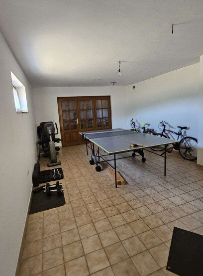 La entrada de la casa también cuenta con un garaje y una amplia cocina de verano con acceso a la terraza. Dos salas multiusos independientes con mesas de billar y ping-pong, además de aparatos de fitness, amplían la oferta recreativa. También hay dos amplias buhardillas disponibles.