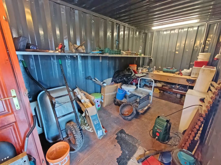 La parcela tiene 1.208 m² y cuenta con árboles frutales, marquesina cubierta para coches, cámara frigorífica y taller de contenedores de 15 m².