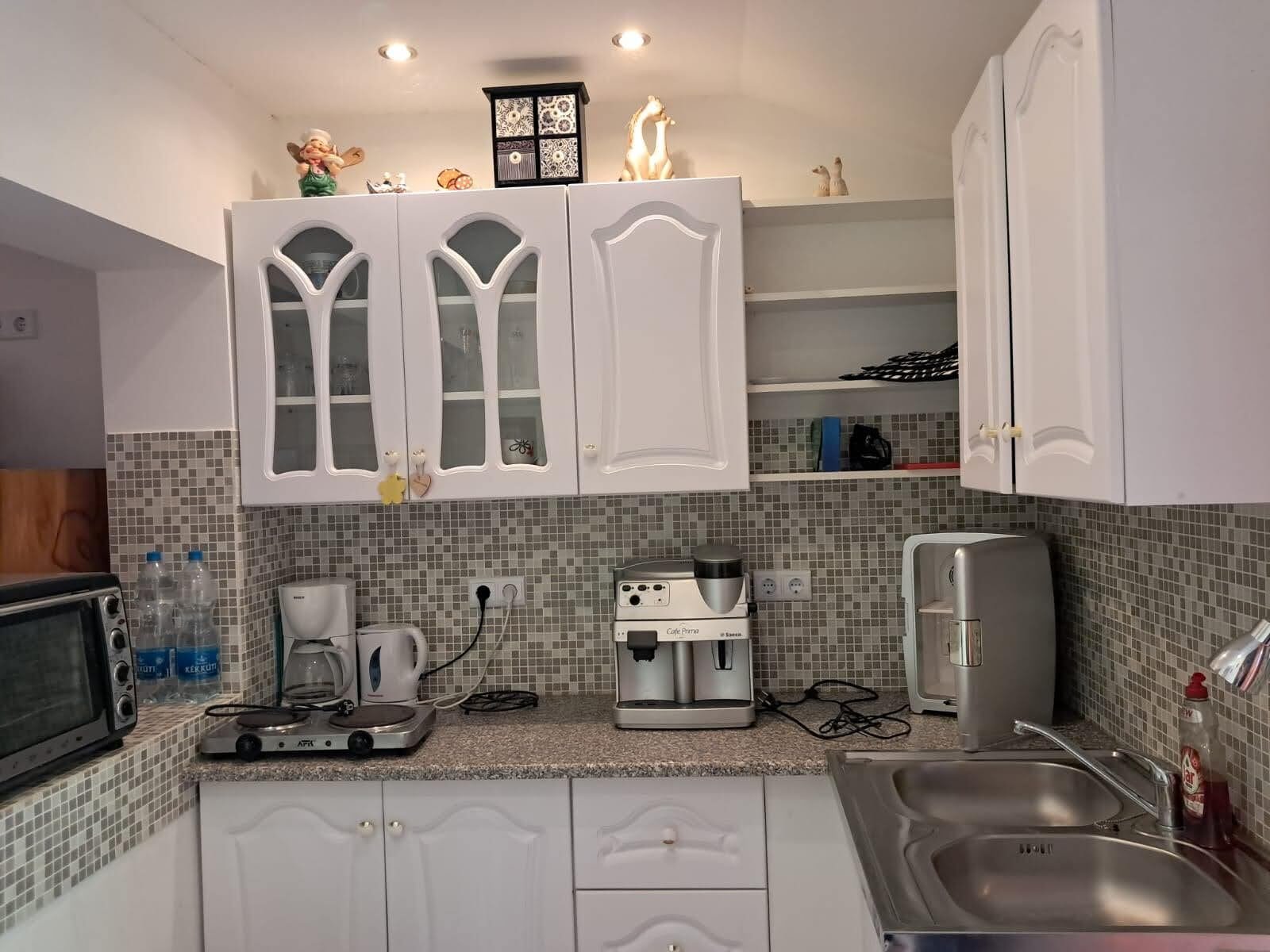 Puede cocinar y asar en la acogedora terraza cubierta, ya que hay un horno incorporado y una zona de cocina equipada con gas envasado.