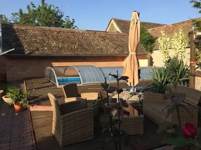 Lo más destacado es la piscina exterior de 3 x 6 metros con techo corredizo de cristal (con sistema de calefacción solar), así como una amplia bodega abovedada.