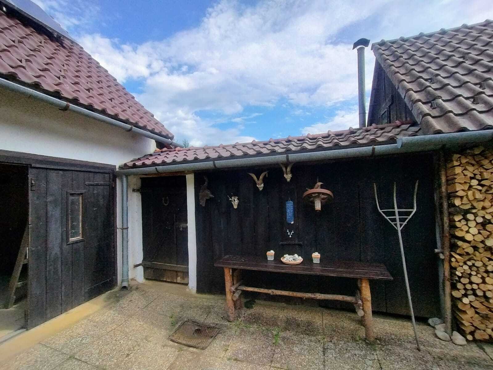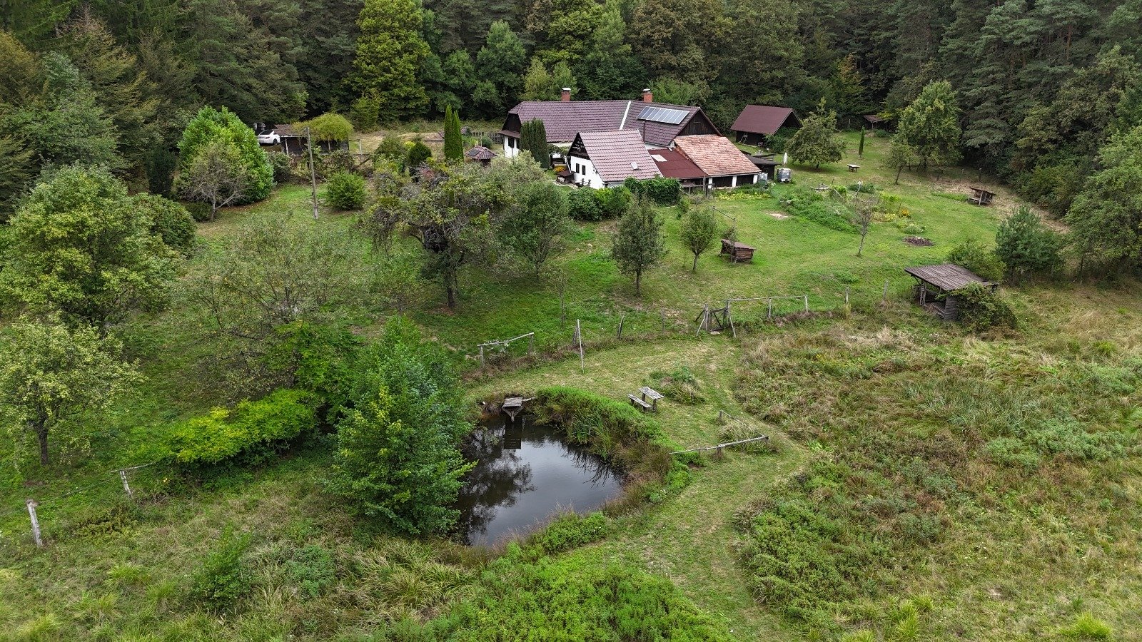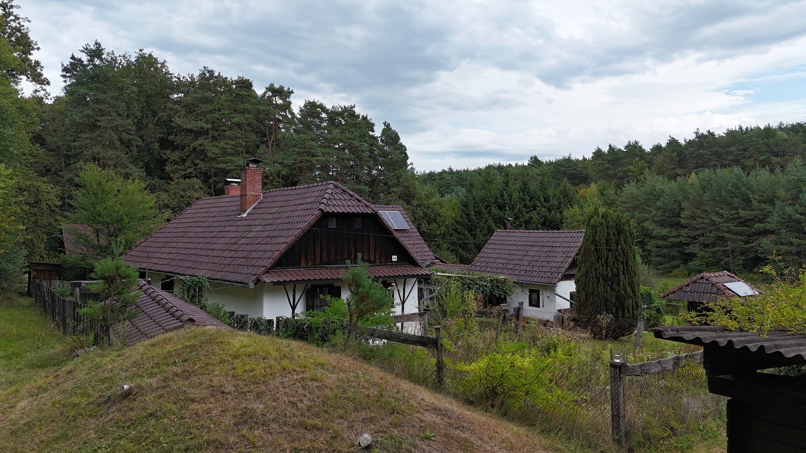 Esta tradicional casa de campo se encuentra en un idílico claro del bosque, un refugio para quienes buscan paz, naturaleza y privacidad. La distribución ofrece cuatro habitaciones con salón-comedor y cocina abierta, un baño con inodoro y un ático convertible. La construcción de barro cocido y ladrillo garantiza un clima interior agradable; una estufa de azulejos, un calentador de agua y una chimenea proporcionan un calor acogedor. Una casa de invitados independiente con cocina de verano, baño y zona de dormir hace que la propiedad sea perfecta para amigos, familia o una oficina en casa en el campo.