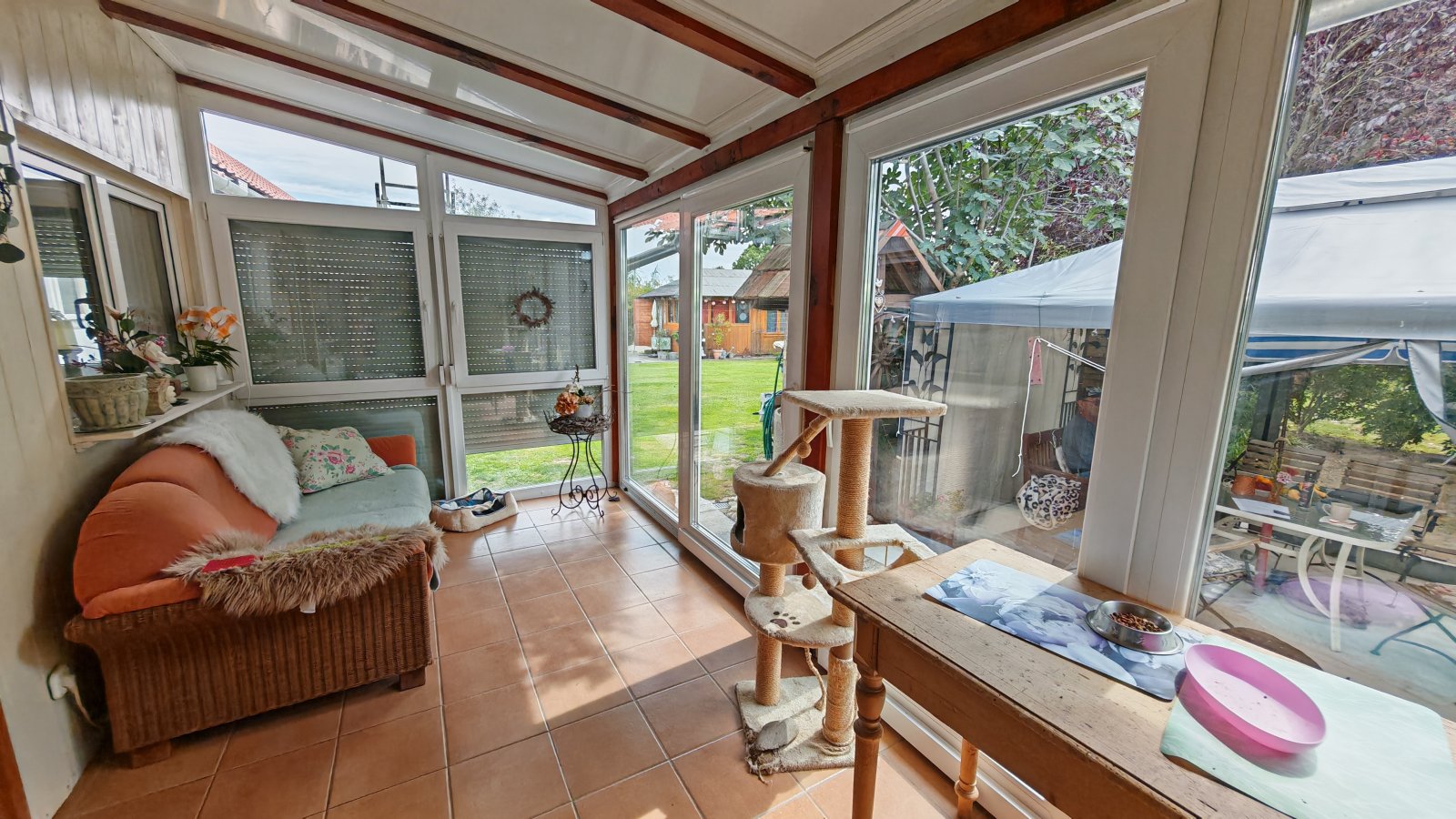 Esta luminosa casa de campo ha sido completamente renovada en los últimos años y ofrece una agradable distribución con recibidor/comedor, cocina abierta, 2 baños, despensa y un invernadero (aprox. 13 m², triple acristalamiento). El sistema eléctrico, las tuberías de agua y el pozo para el riego del jardín son completamente nuevos. El tejado se renovó hace aproximadamente 5 años (incluidos los listones) y la mayoría de las ventanas son de doble acristalamiento. Dispone de conexión al alcantarillado. Internet disponible a través de Telekom o 4G.