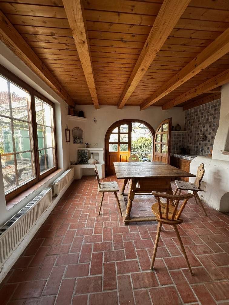 Esta romántica casa de artista combina un ambiente sureño con un amplio espacio para la creación de ideas. La pieza central es el espacioso estudio (aprox. 130 m²): abierto, luminoso, perfecto para pintar, esculpir, practicar yoga, realizar talleres o pequeños conciertos. Tres estufas de azulejos artesanales y una chimenea crean un ambiente acogedor; dos baños con luz natural y aseos para invitados hacen que la vida diaria sea cómoda. Las dos torres, una pérgola cubierta de enredaderas y el rosal y huerto, cuidadosamente diseñados, le dan a la casa su sello inconfundible.