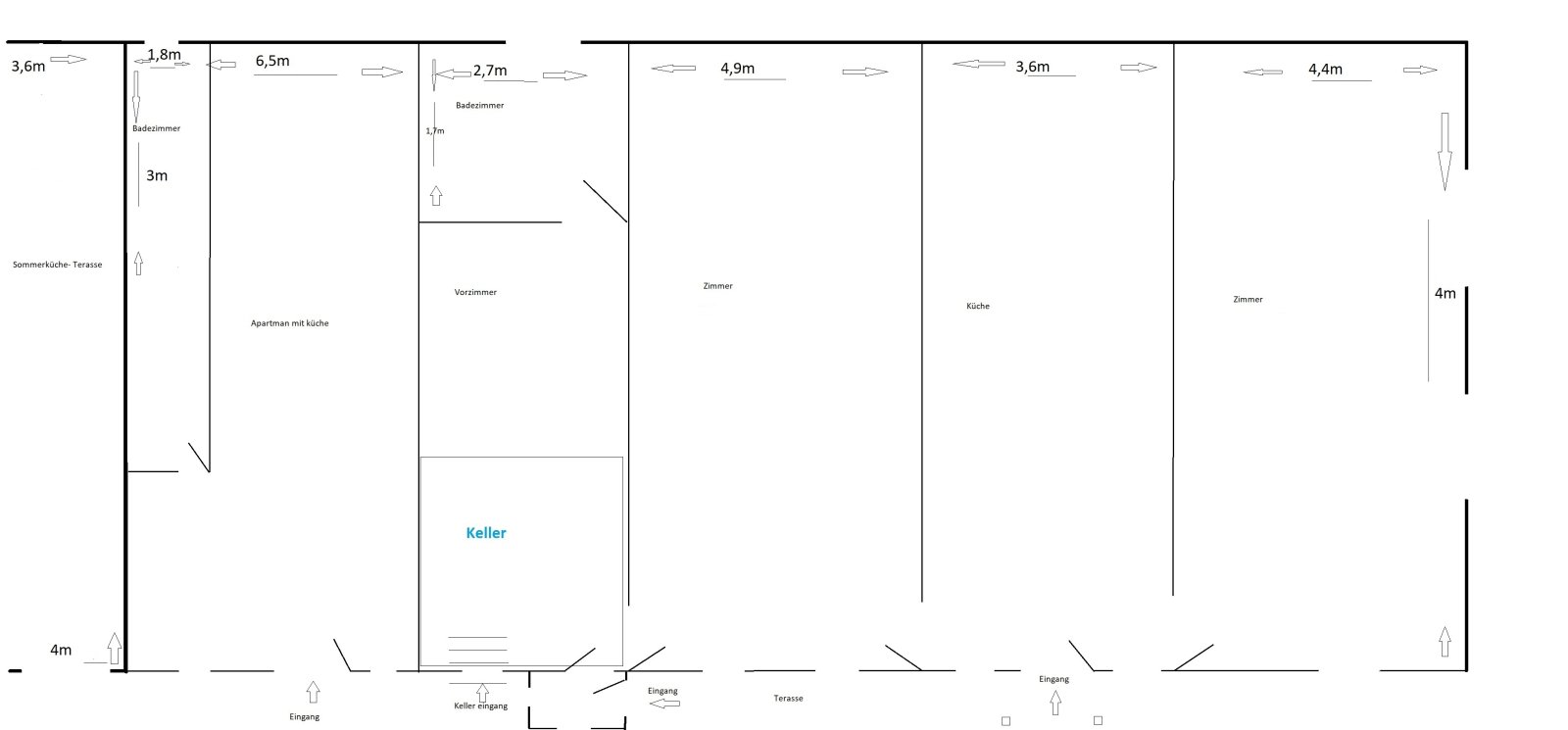 Entre los dos apartamentos se encuentra un sótano abovedado de 15 m² con entrada independiente.