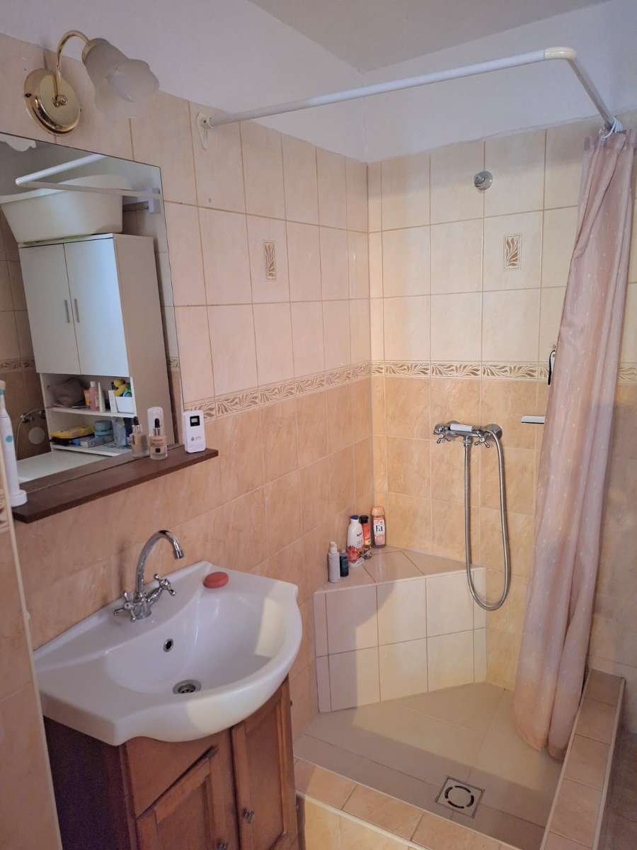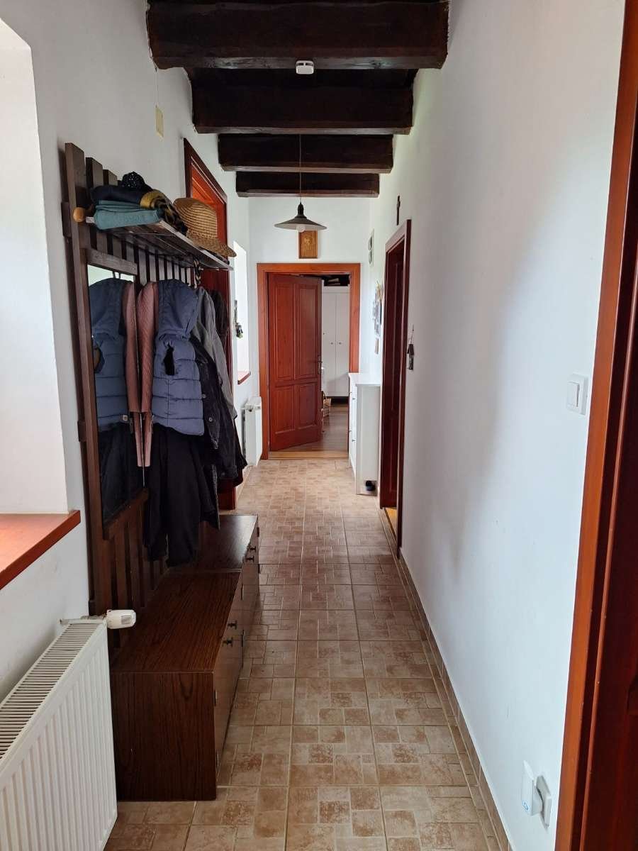 En el pasillo, orientado al este, se encuentran dos dormitorios adicionales y el baño. Gracias a las paredes de ladrillo de 50 cm de grosor, el techo y el suelo aislantes, las ventanas aislantes y el colector solar en funcionamiento, la casa tiene un consumo energético muy bajo. La propiedad cuenta con una línea de gas natural y electricidad.