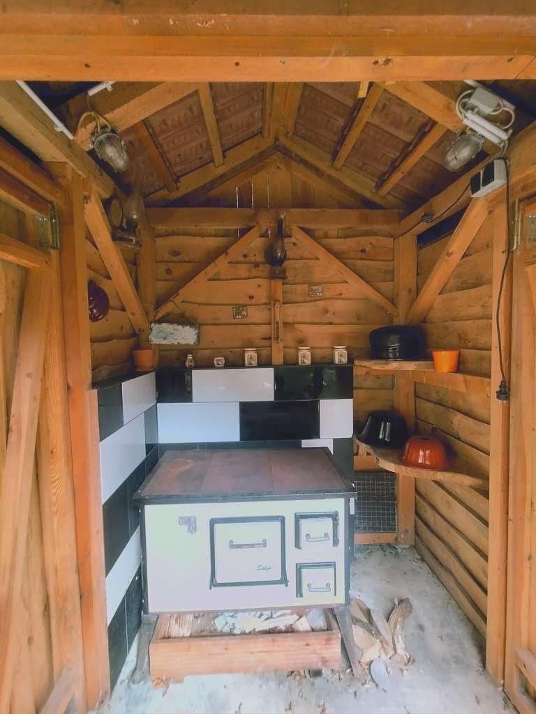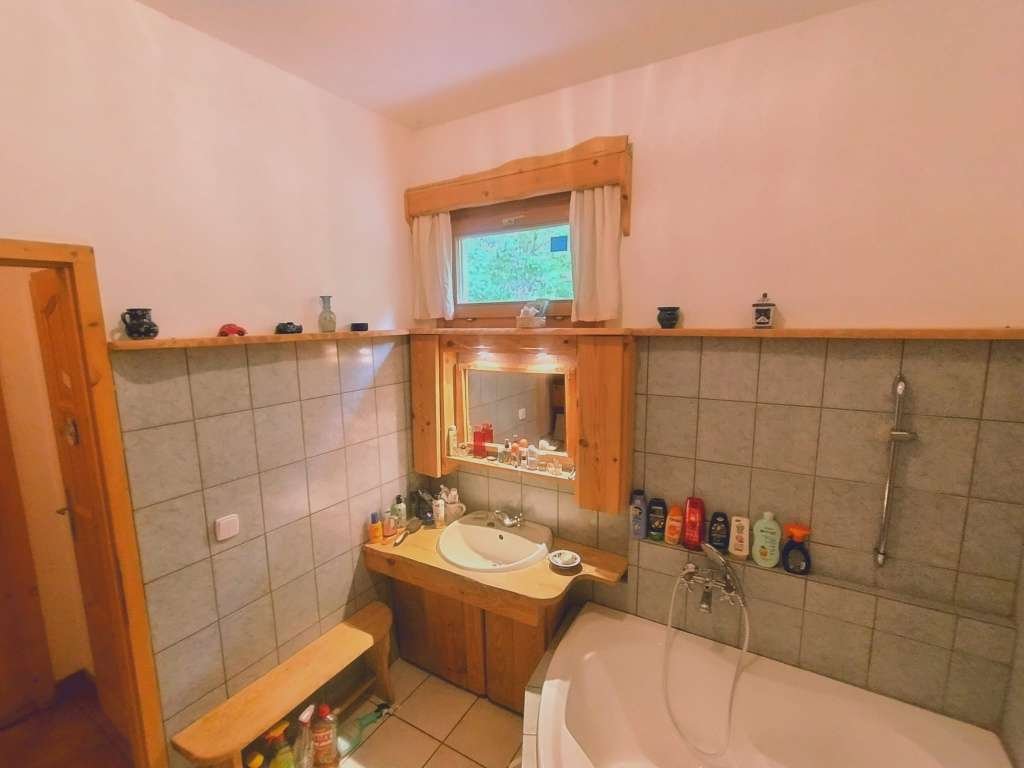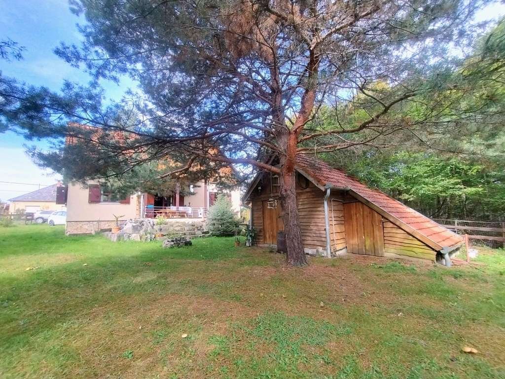 El edificio se alza sobre una fantástica parcela de 2700 m² y está construido sobre una cimentación alta. La planta baja cuenta con dos dormitorios, un amplio y luminoso salón, cocina, despensa, un aseo, un baño, un recibidor, un pasillo y un lavadero. El luminoso salón da a la terraza, con vistas al bosque, ofreciendo una vista relajante en cualquier época del año. El jardín cuenta con una zona de barbacoa, un cenador, una caseta de jardín y un leñero.