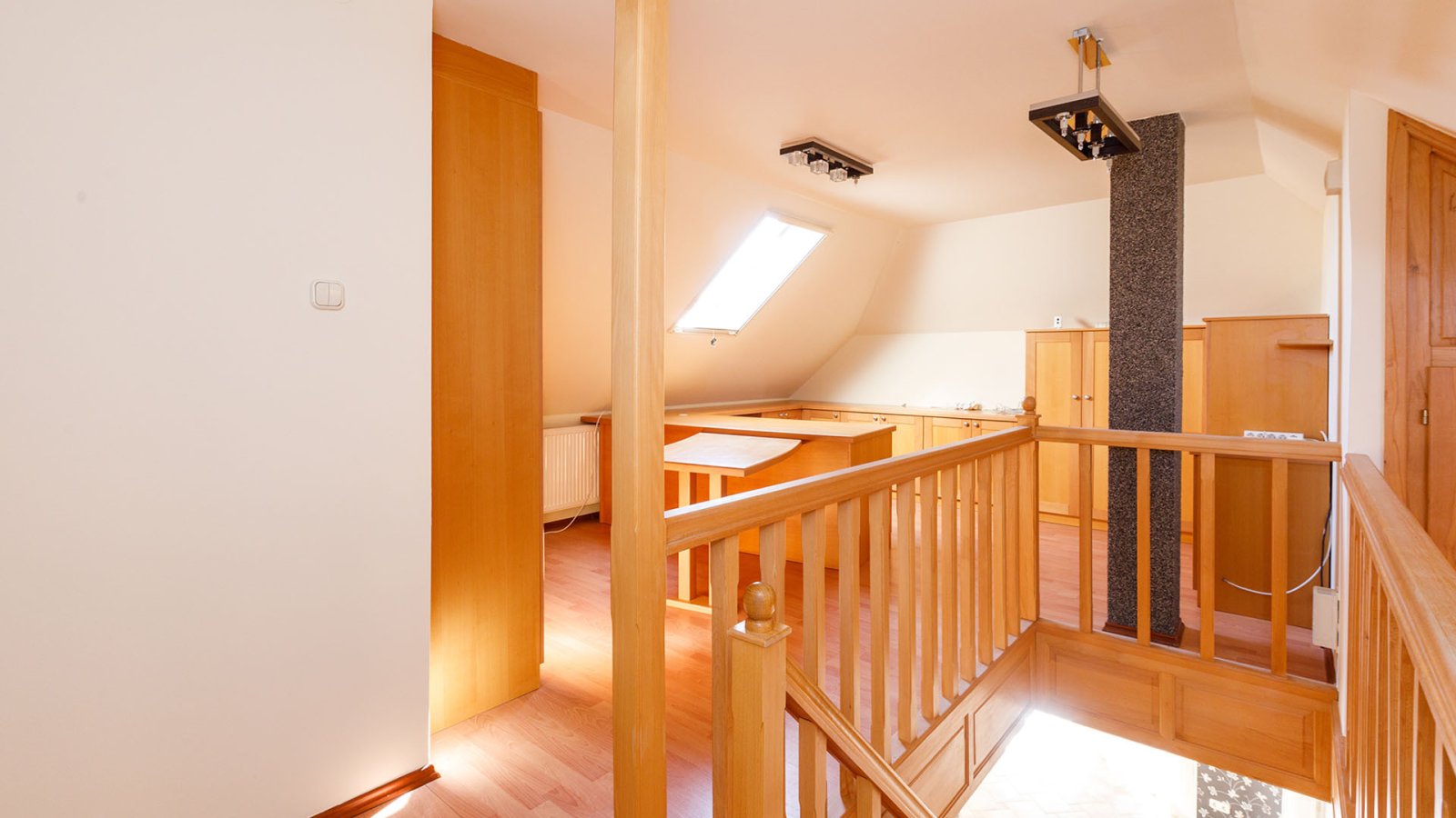 Una espaciosa casa unifamiliar ideal para vivir con varias generaciones, con un total de 5 dormitorios, 2 salones y 3 baños. La calefacción es de gas, radiadores y suelo radiante. Tres equipos de aire acondicionado (también en el ático) proporcionan tanto refrigeración como calefacción. Hay tres aseos, dos de ellos en habitaciones separadas. El sótano seco está diseñado como gimnasio y tiene acceso tanto interior como exterior. Un garaje doble tiene capacidad para dos coches. También dispone de dos trasteros independientes. El patio cuenta con dos casetas de jardín de madera independientes de 3 x 3 metros.