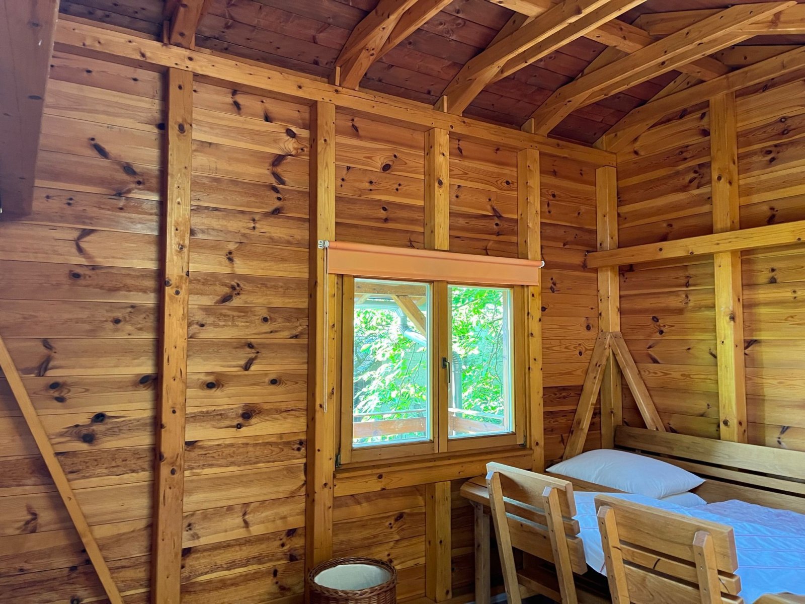 La casa de madera consta de un luminoso salón y una bodega en la planta baja con paredes reforzadas con bloques de YTONG.