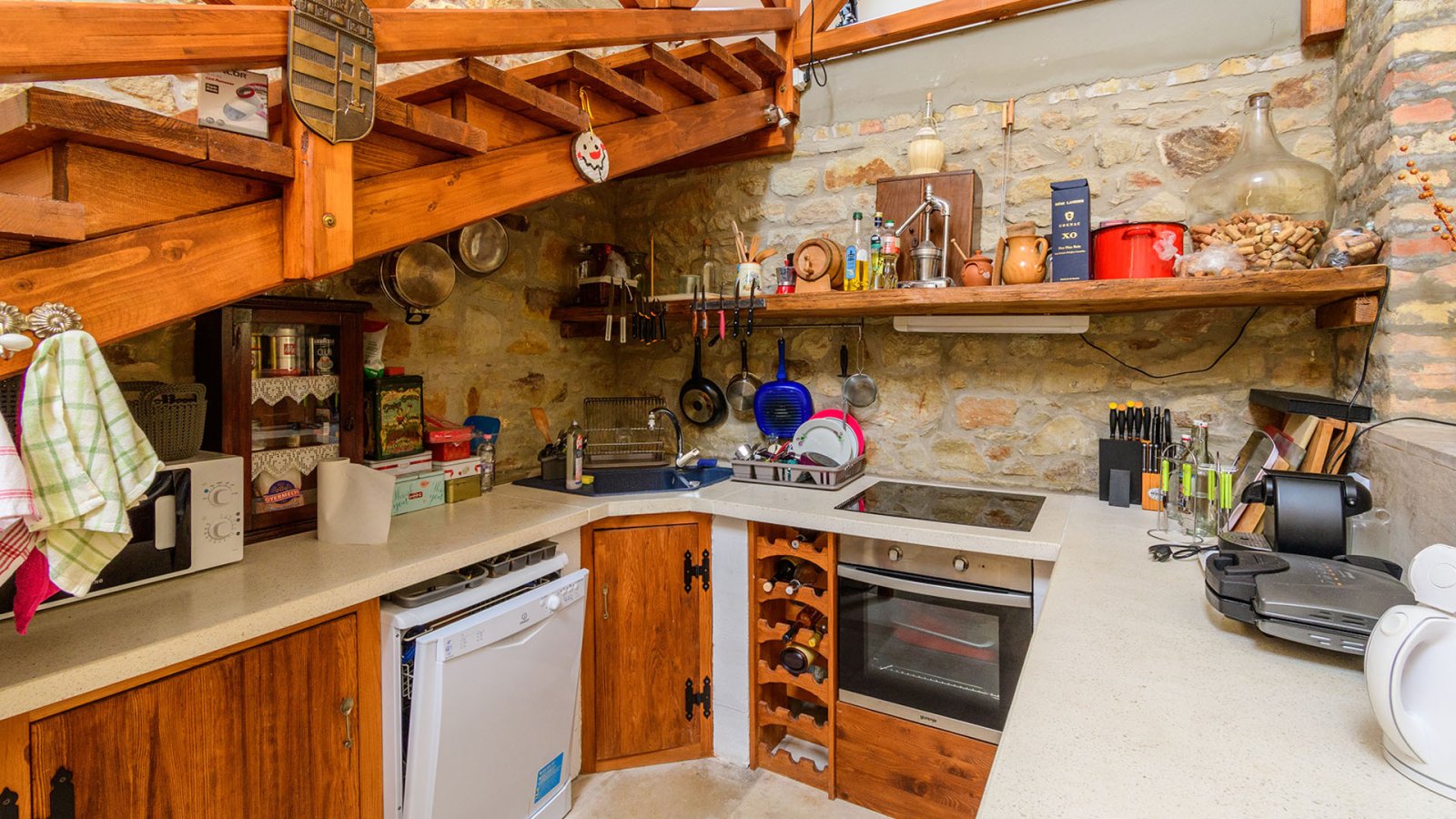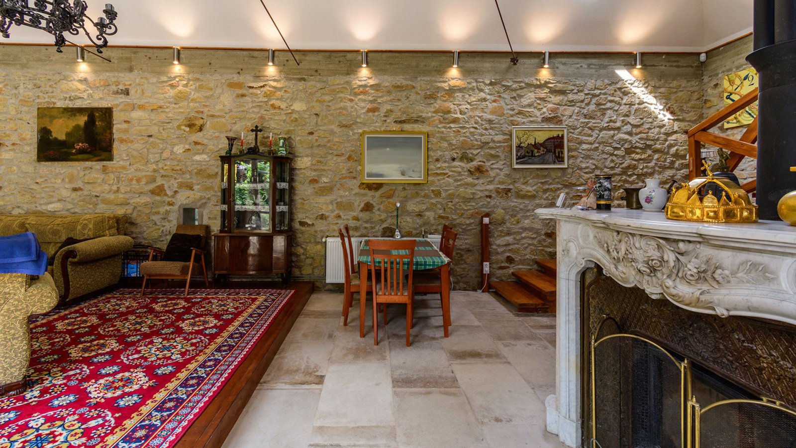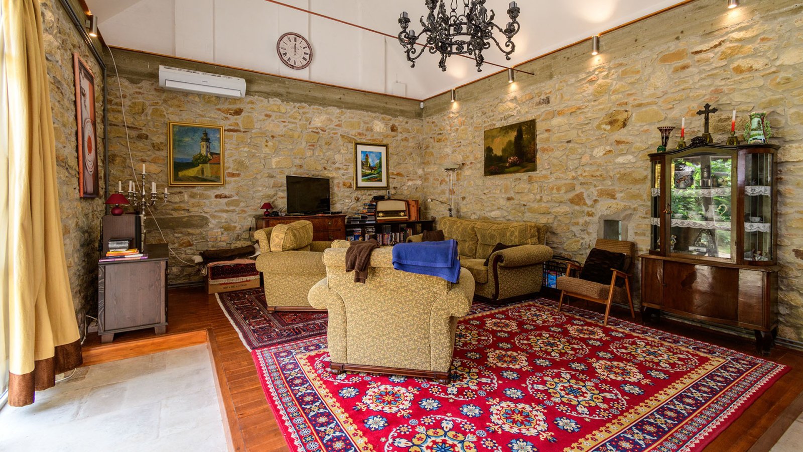 Los elementos de madera y las paredes de piedra crean la atmósfera especial de la casa.