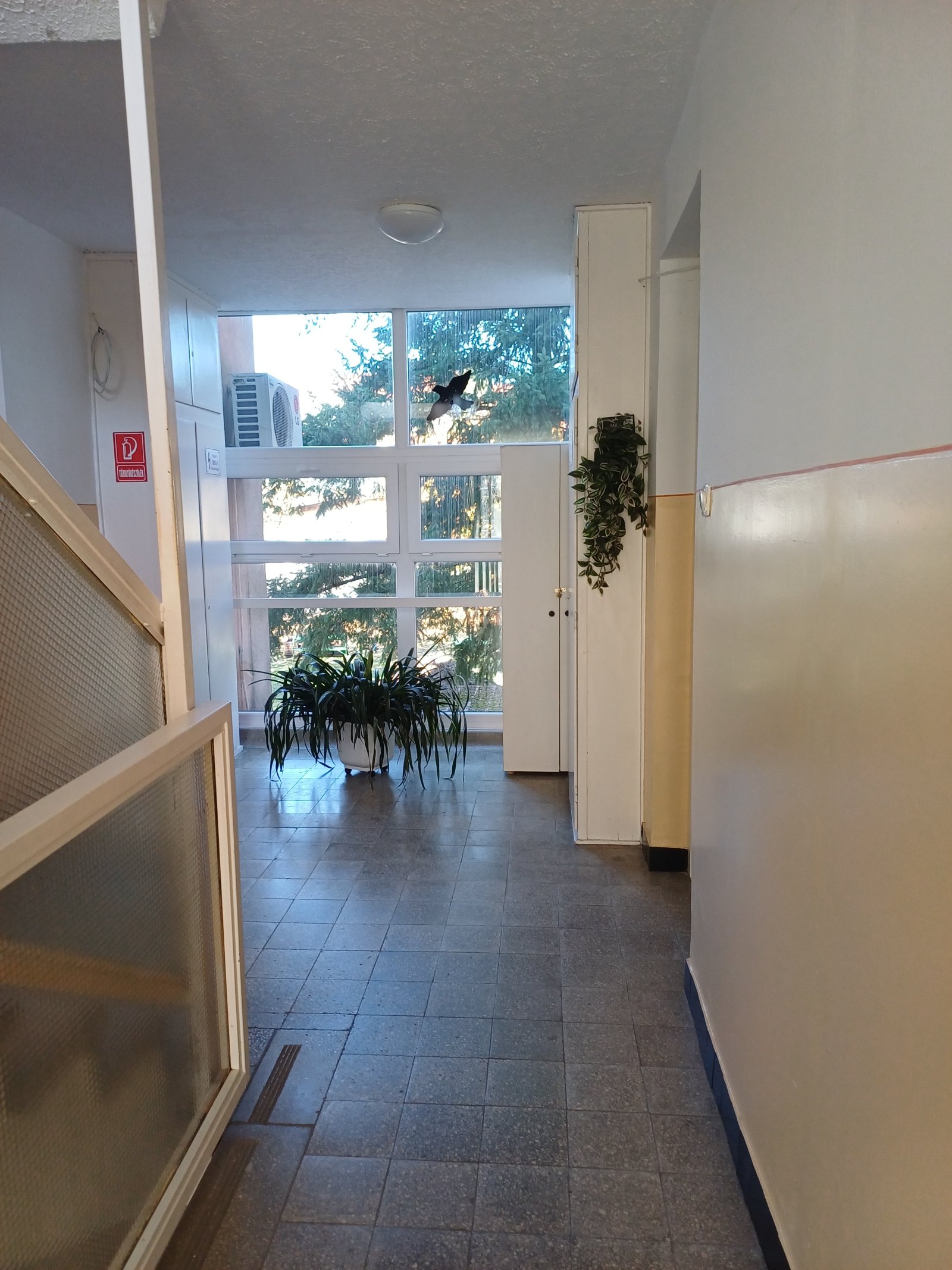 Las ventanas del salón y del dormitorio dan a la calle. La ventana de la cocina da al jardín de infancia.