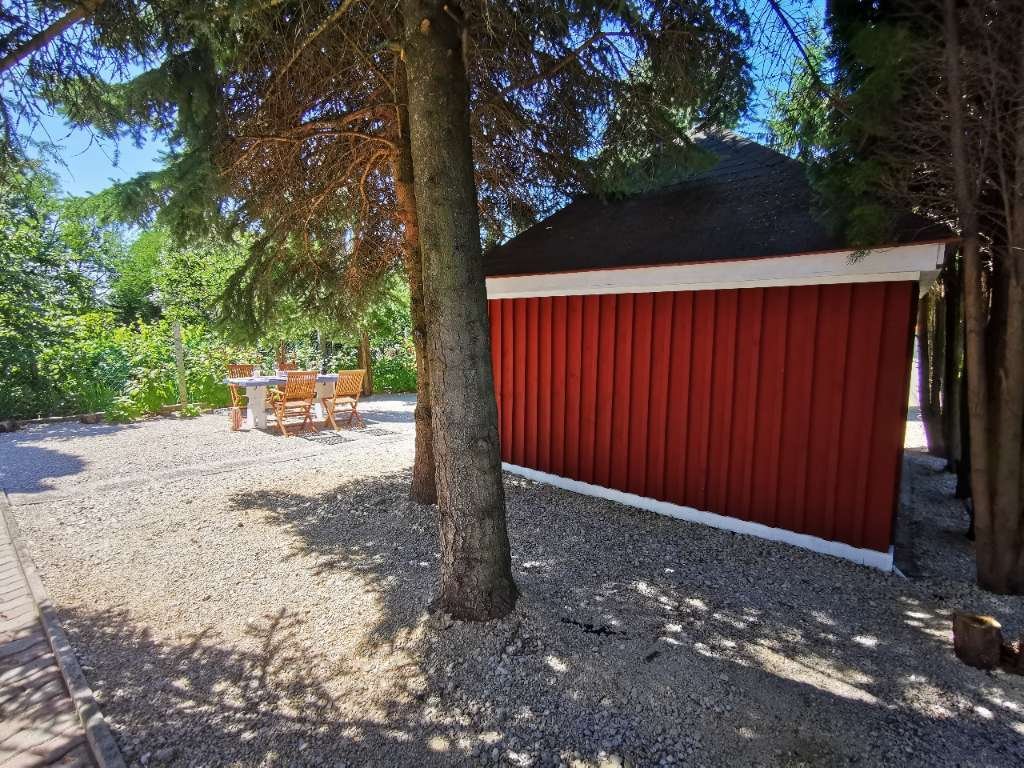Hay un supermercado Coop a 150 metros de la casa, frente a la iglesia protestante, y a la vista hay una zona de barbacoa pública y un parque infantil.