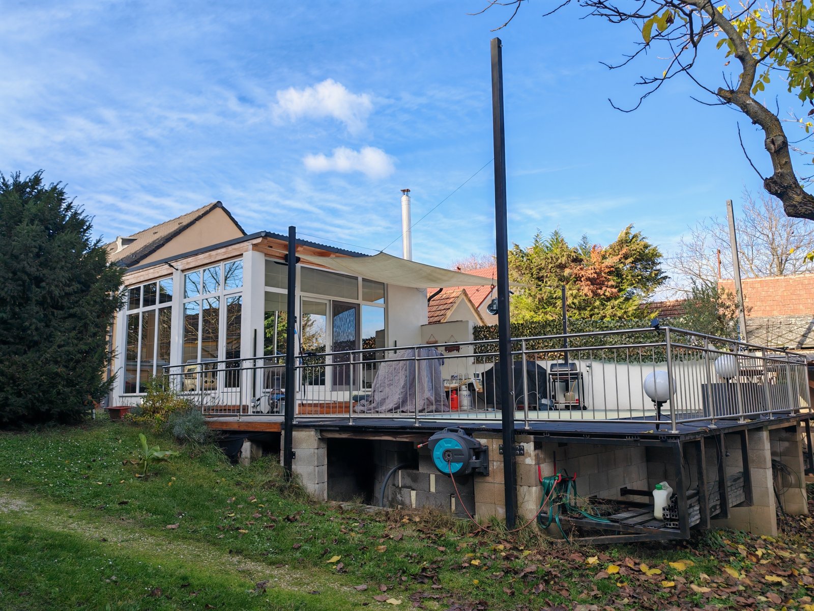 La chimenea en el salón proporciona un calor acogedor y un confort excepcional, mientras que el aire acondicionado garantiza un agradable frescor en los días calurosos. Un luminoso invernadero ofrece una magnífica vista del jardín e invita a relajarse. El ático ofrece espacio de almacenamiento adicional. El impecable estado de la casa refleja su construcción de alta calidad, complementada con un eficiente sistema de calefacción central de gas que proporciona un calor fiable.