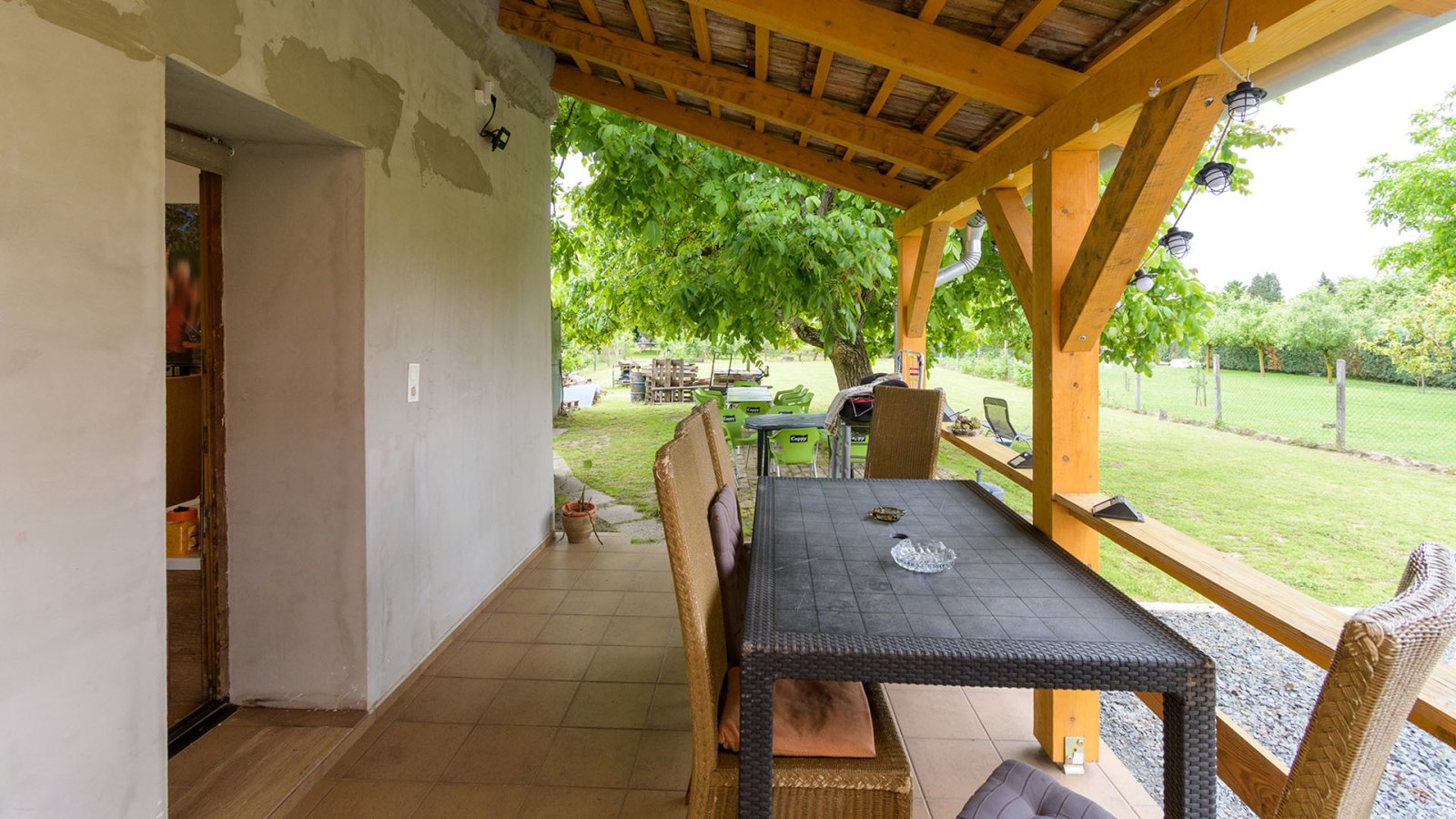 La terraza de 12 m² invita a relajarse, desconectar y disfrutar del tiempo en familia. La amplia parcela llana ofrece la posibilidad de practicar agricultura a pequeña escala, jardinería u otras actividades de ocio: todo lo necesario para una vida tranquila está aquí.