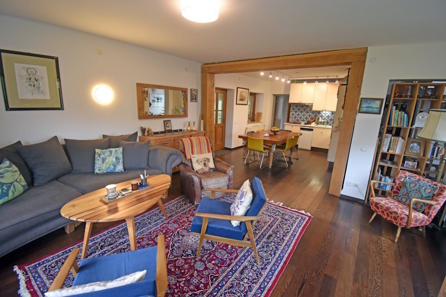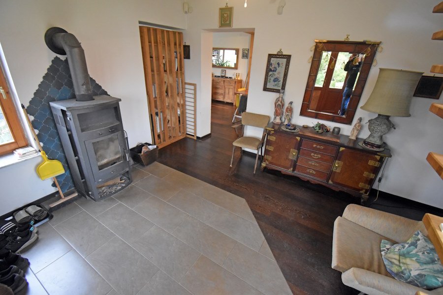 - El salón también da a una acogedora terraza cubierta de 10 m² con una hermosa vista al jardín. ... - En la planta superior, también hay un salón de aproximadamente 70 m².