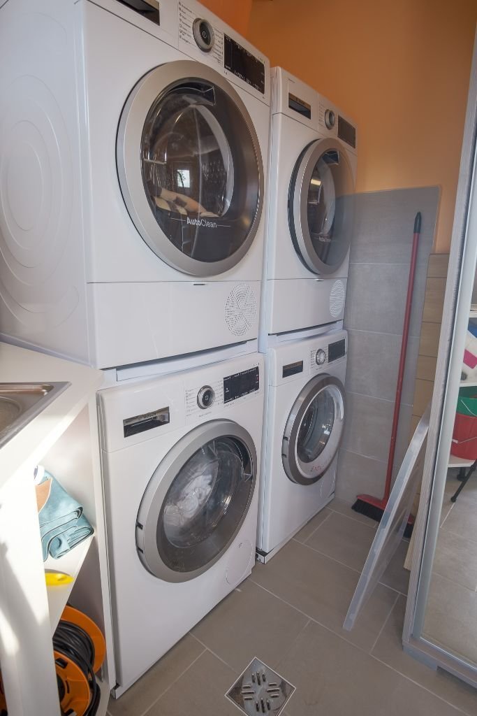 - un baño en suite con aseo en cada planta, además de un aseo adicional (un total de 2 aseos por planta), mosquiteras en todas las ventanas, lavadero con lavadora y secadora, jardín privado y zona de barbacoa con parrilla Enders Monroe.
