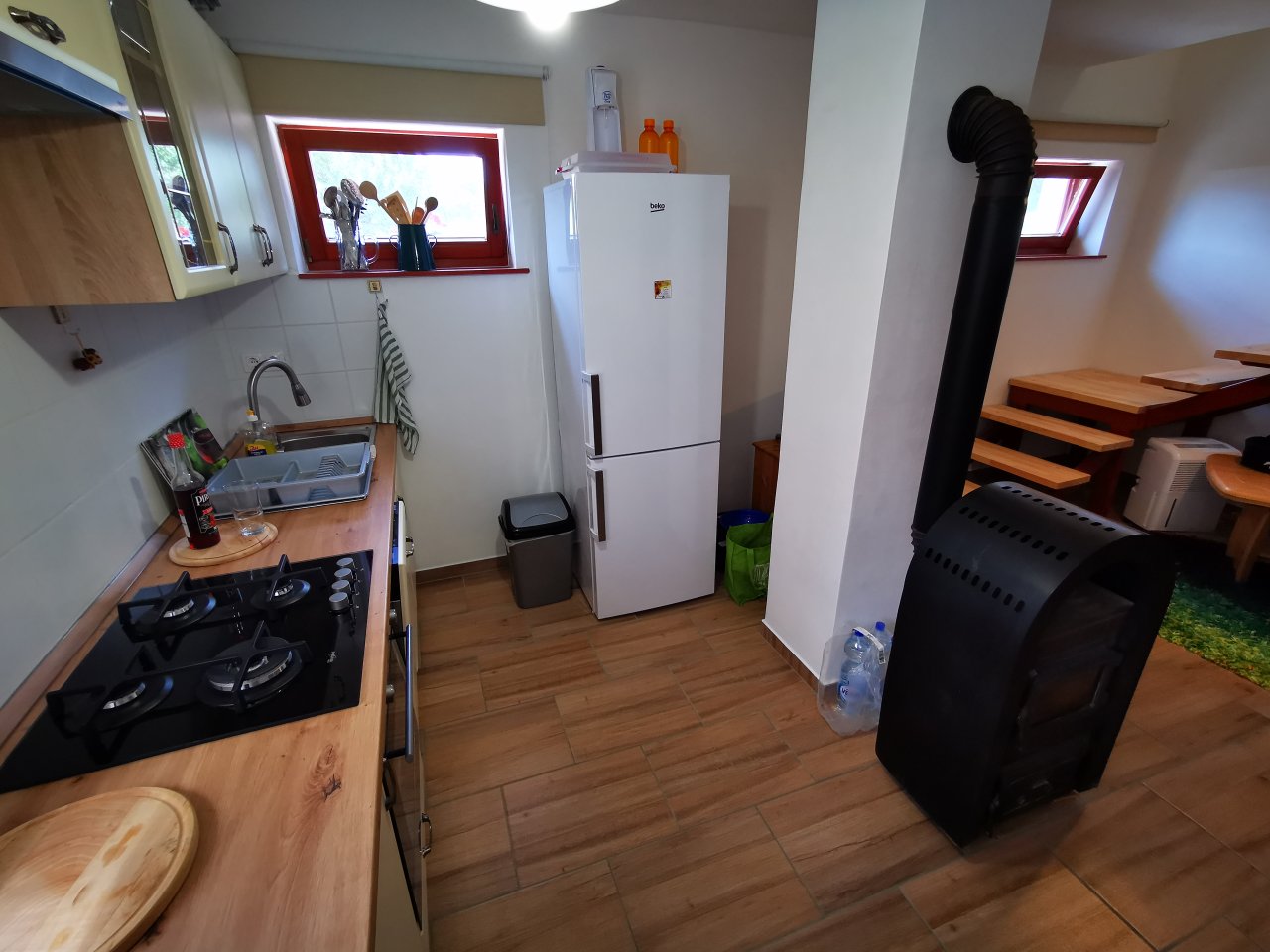 A konyha új. Hasonlóképpen a hűtőszekrény. Ármegállapodás születhet a konyha és a hűtőszekrény átvételéről.