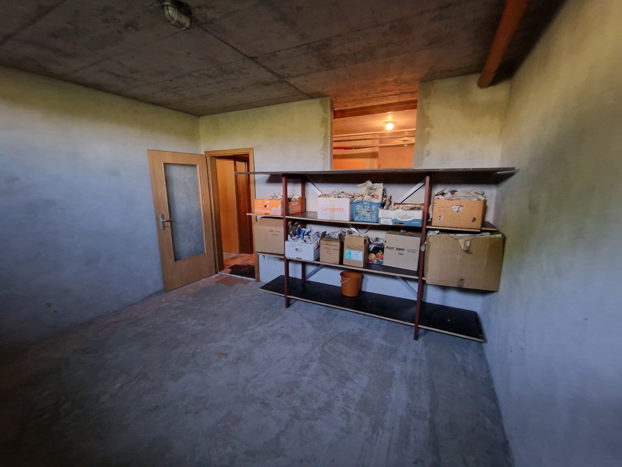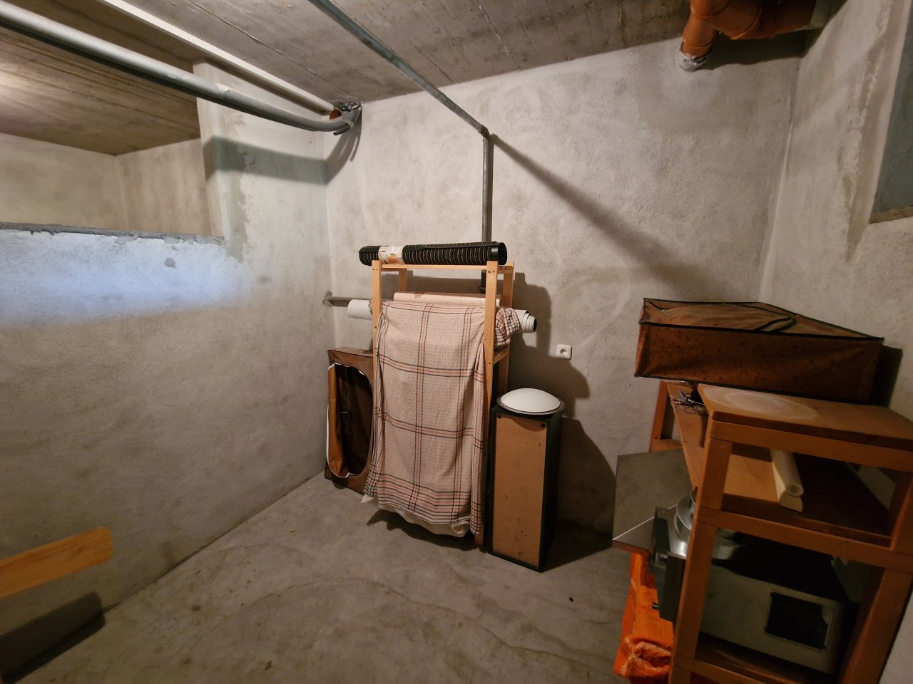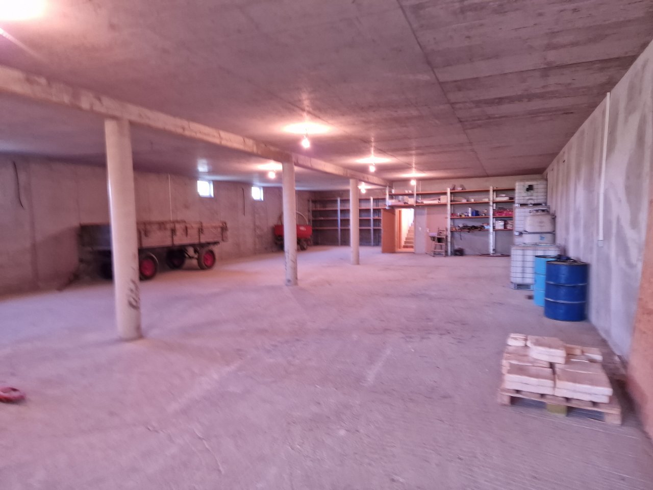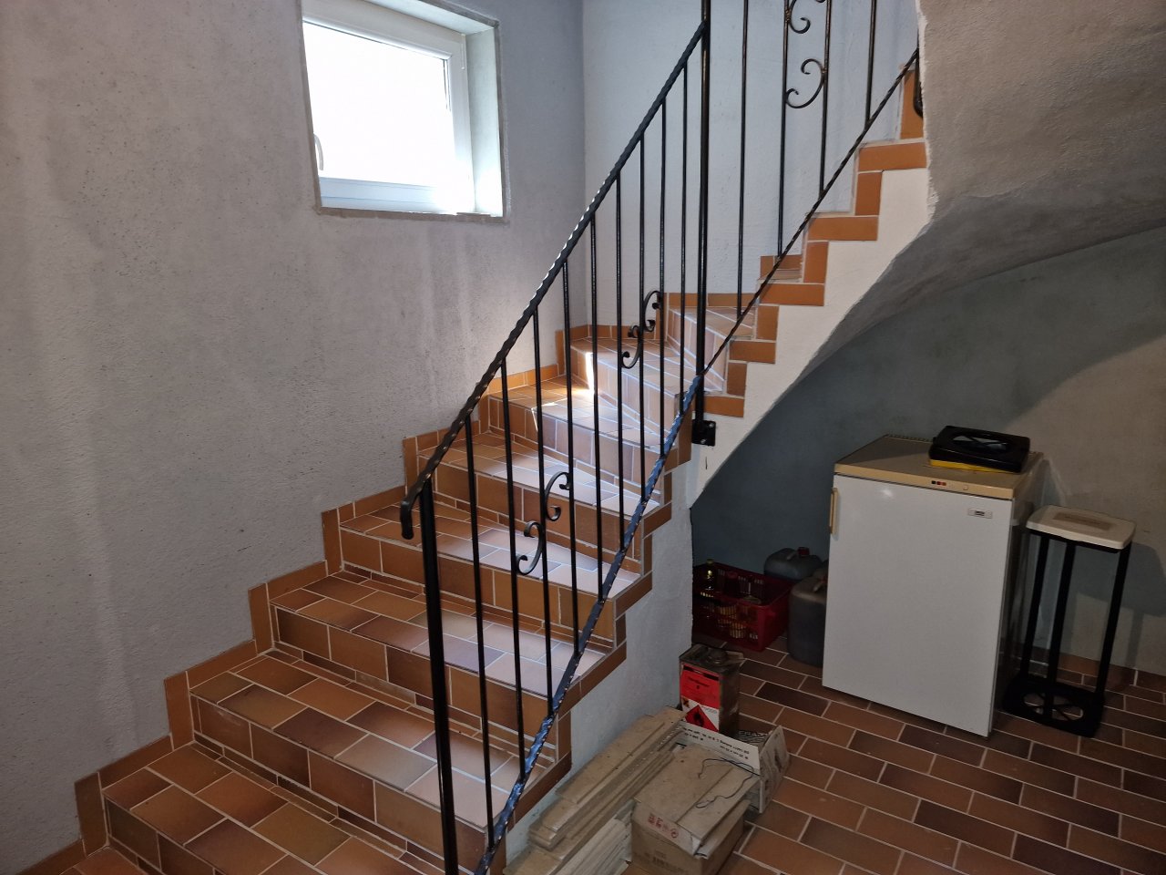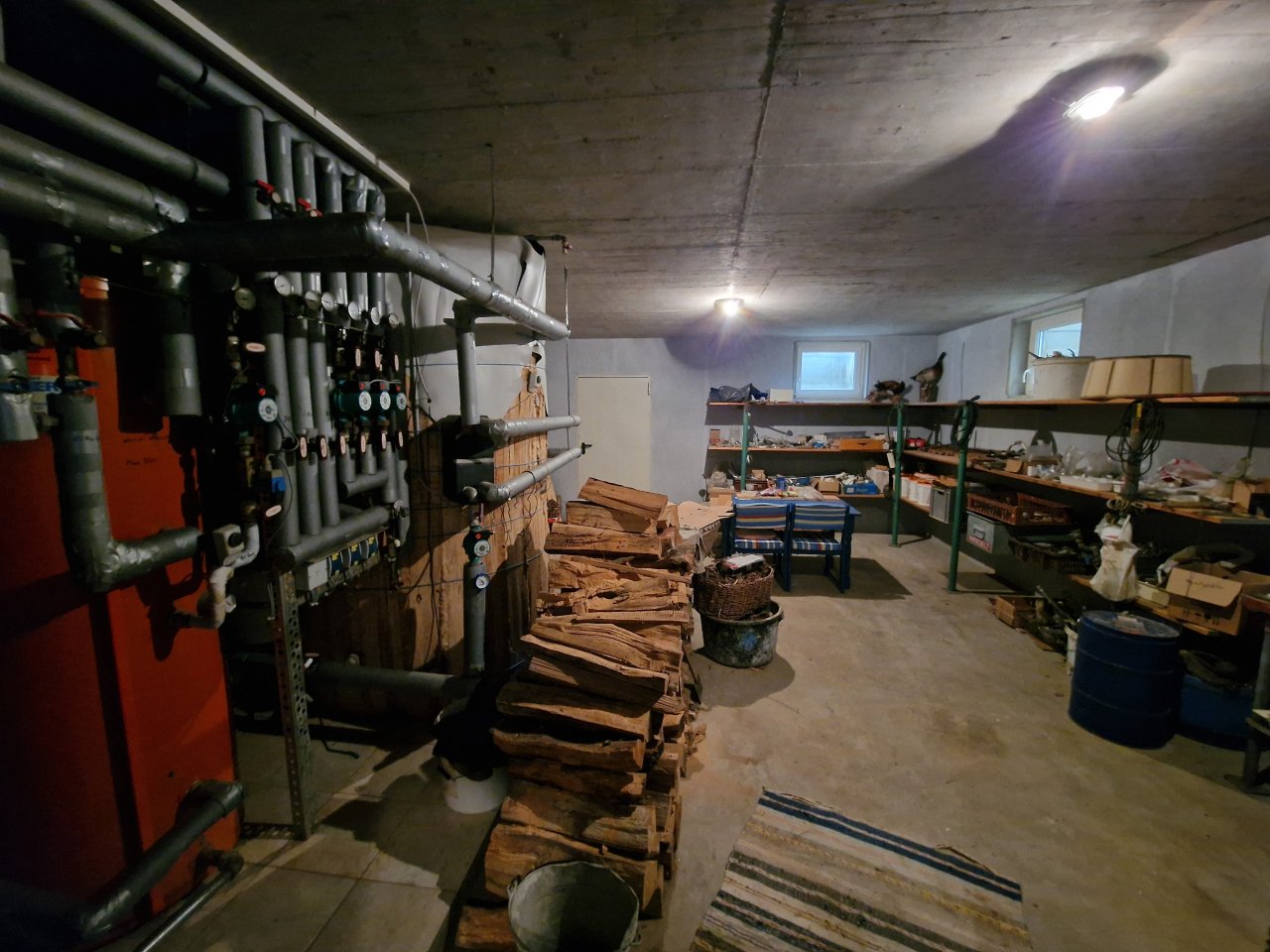 Részletek a házról: teljes pince 121 m²-es fűthető házzal, fával az udvarból és egyéb helyiségekkel.