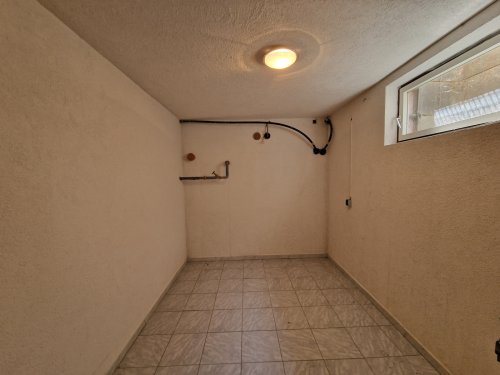 Falépcső vezet a további 2 szobához és a tetőtérben található WC-hez. Az egész házhoz tartozik egy kb. 111 m²-es pince. Az alagsorban több szoba, kazánház és egy fatároló, udvari fadobóval. A lakással szomszédos, betonpadlós tégla melléképület jelenleg fatárolóként működik. Az ingatlanhoz tartozik egy dupla garázs és egy másik garázs tárolóval és bejárattal a házba.