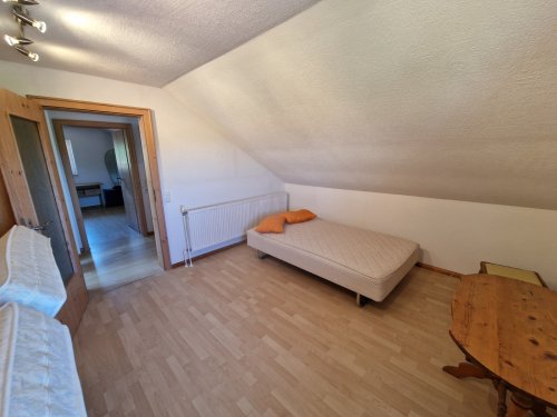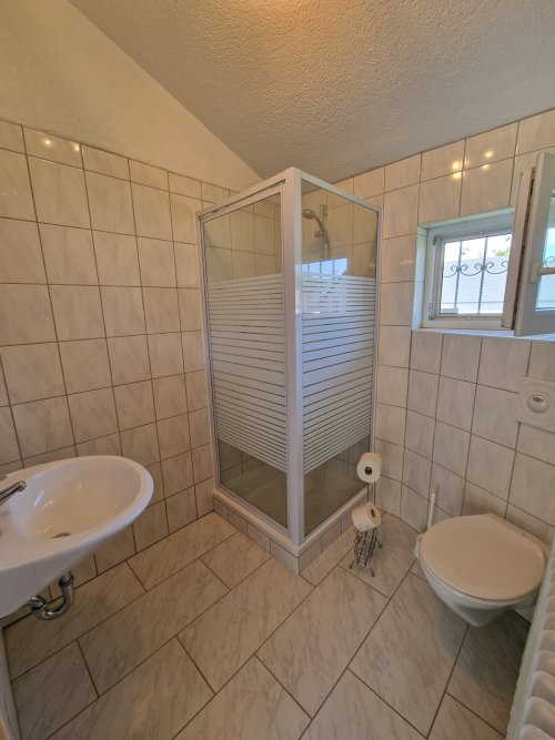 Az 1. emeleten található egy 3. lakóegység, kb. Ez a lakóegység egy kb. 37 m²-es nappaliból, egy másik hálószobából, egy nagy étkező konyhából, egy kamrából, egy zuhanyozós káddal, egy plusz WC-ből és egy kb. 12 m²-es fedett teraszból áll kb 8 m²-es erkély.