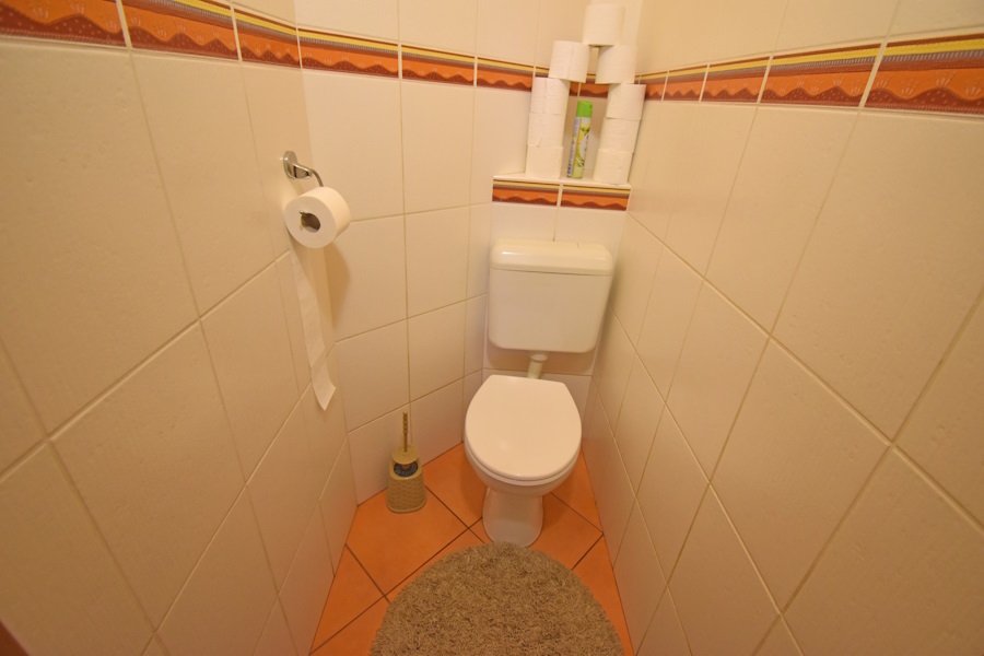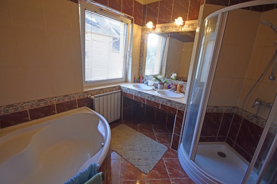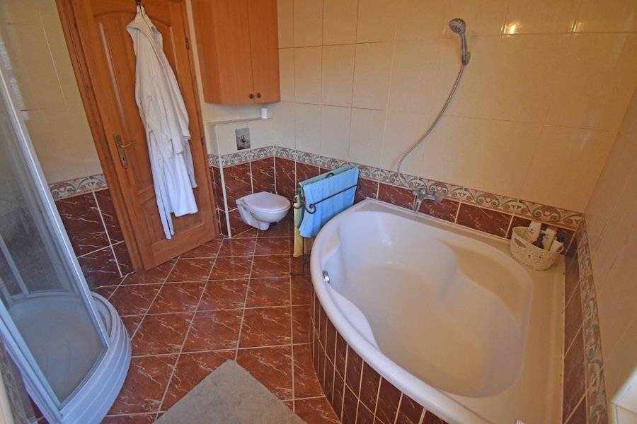 Van egy másik fürdőszoba káddal, zuhanyzóval és WC-vel.