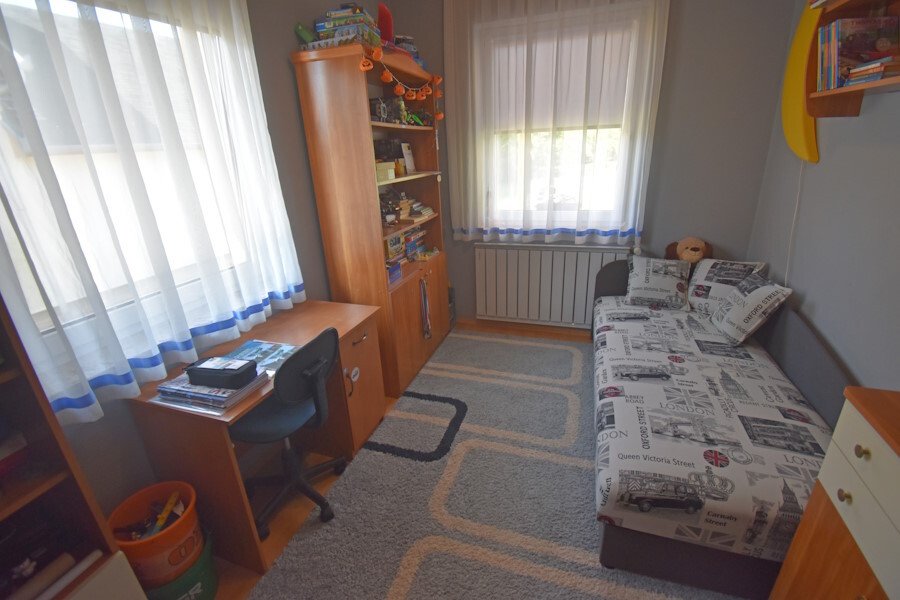 A folyosó bal oldalán alakították ki a család privát szobáját. Itt 2 hálószoba található, amelyek közül az egyikben gardrób található. A másik szobában külön gardrób található.