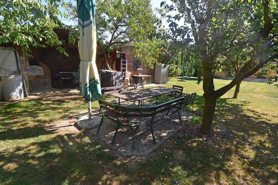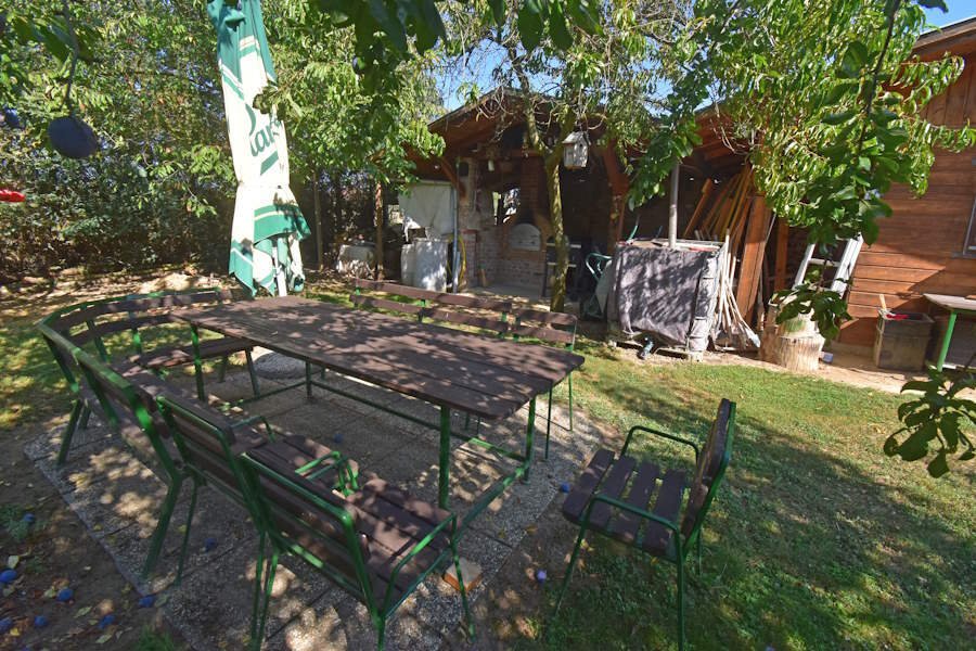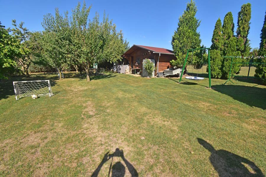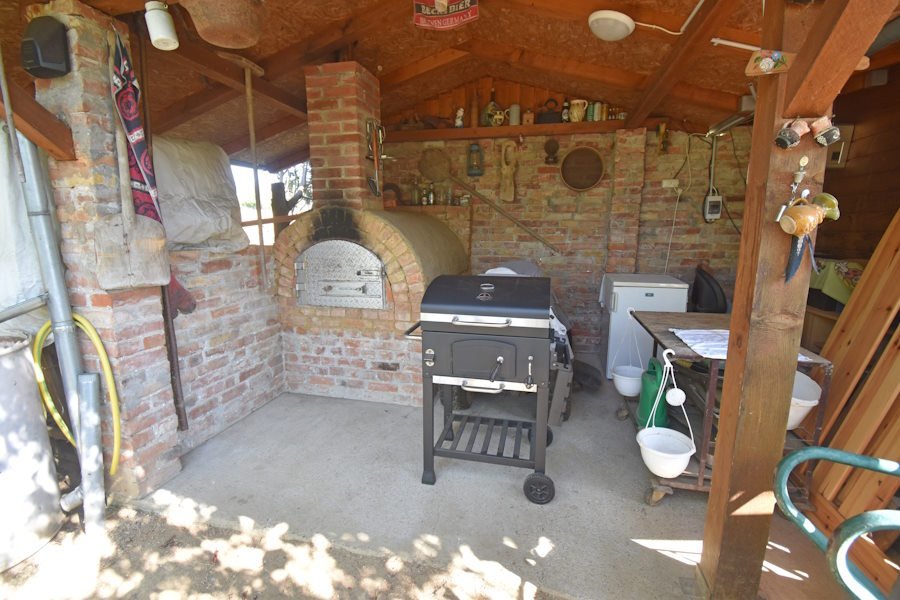 A kert végében található egy faház, mely tárolóhelyiségként és egy fedett rész beépített sütővel szolgál. Itt lehet grillezni is.