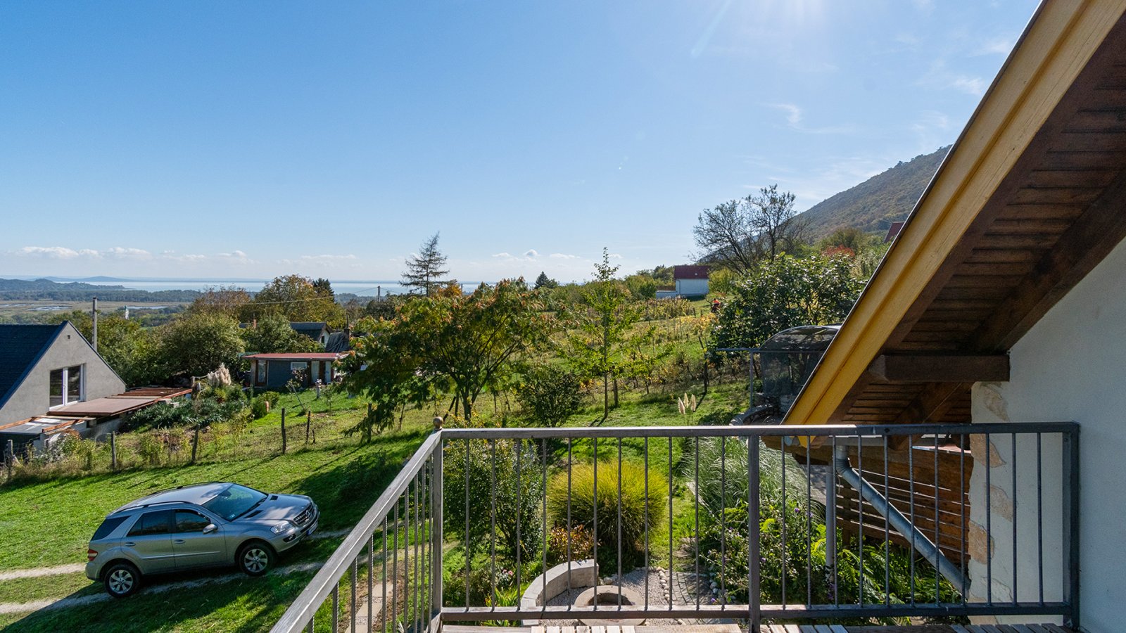 Az ingatlan egy erkéllyel is lenyűgöz, amely tovább javítja a panorámát. Itt teljes mértékben élvezheti a Balaton feletti lélegzetelállító naplementét.