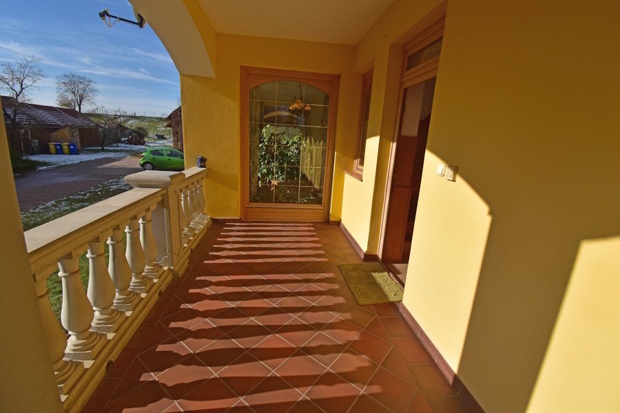 A nyílászárók hőszigetelt tölgy, a lépcső szintén tömör tölgy.