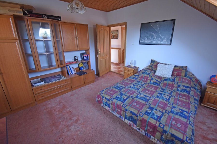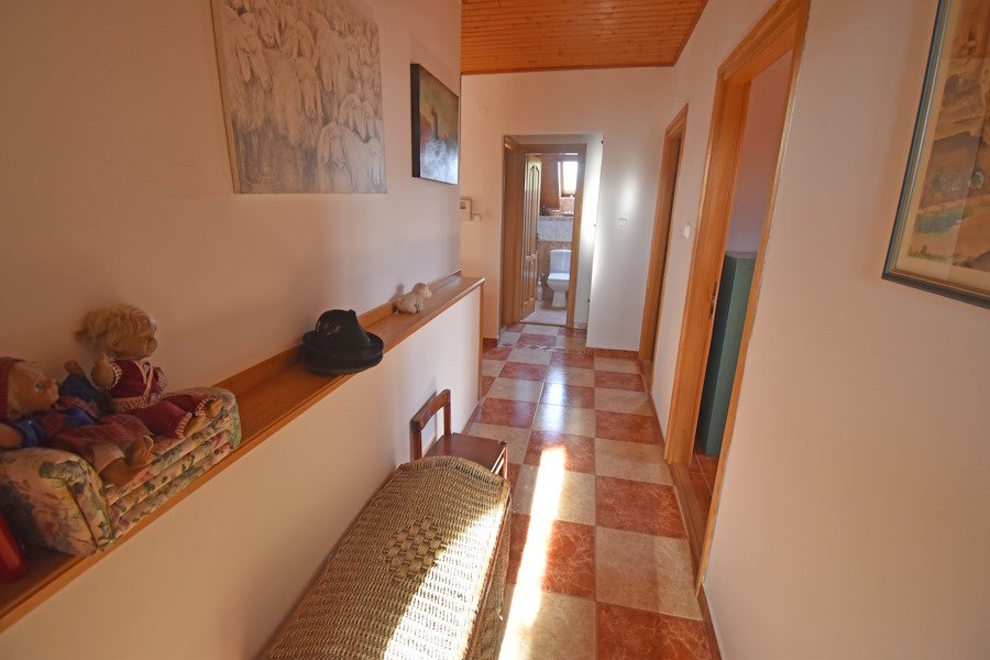Az emeletre érve egy körülbelül 65 m2-es nappali-konyha-étkezőben találja magát, 11 m2-es erkéllyel. A kamra a konyhából nyílik. Ezen az emeleten további 4 szoba található, ebből 2 közös erkélyes. Van még egy fürdőszoba káddal, zuhanyzóval, WC-vel, bidével és külön WC-vel.