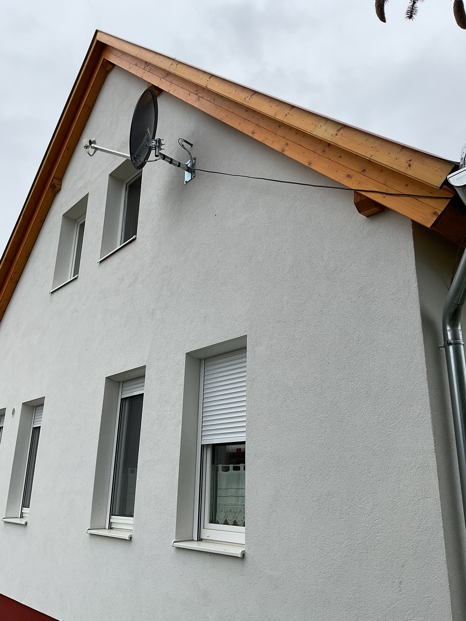 A ház előtt egy nagyon nagy, 40 m²-es veranda található. Ennek a felét fedezik. Ide egy 20 nm-es télikert van tervezve. A fennmaradó szabad területen egy behúzható napellenző található.