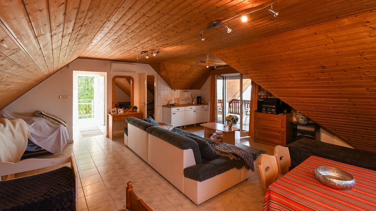 Az ingatlan 2 különálló lakásból áll, melyek szükség esetén össze is vonhatók. A házhoz tartozik még egy borospince, egy fedett kocsibeálló, egy garázs és egy új faház a kertben.