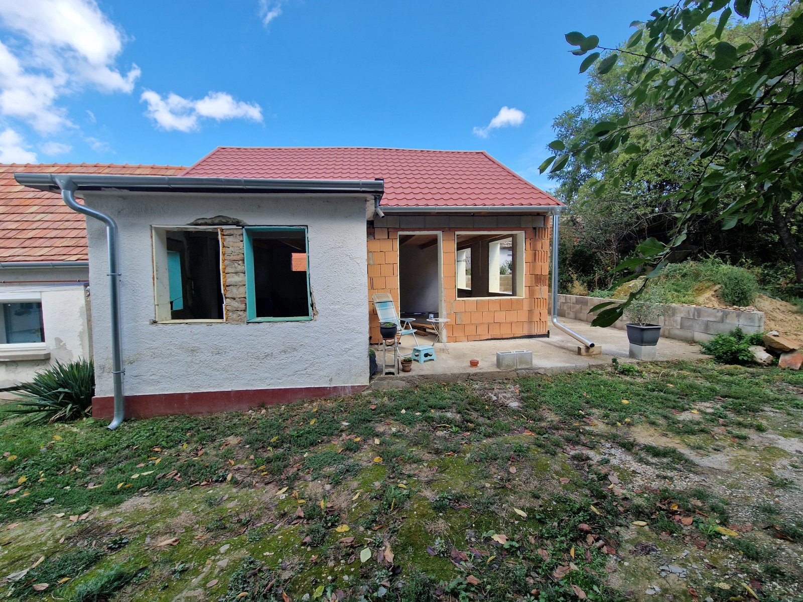 - Ha elkészült, a bővítmény kb. 42 m²-es, és elegendő helyet kínál egy nappali/hálórésznek, valamint egy konyhának és egy másik fürdőszobának, valamint egy nagyon szép, kertre néző terasznak.