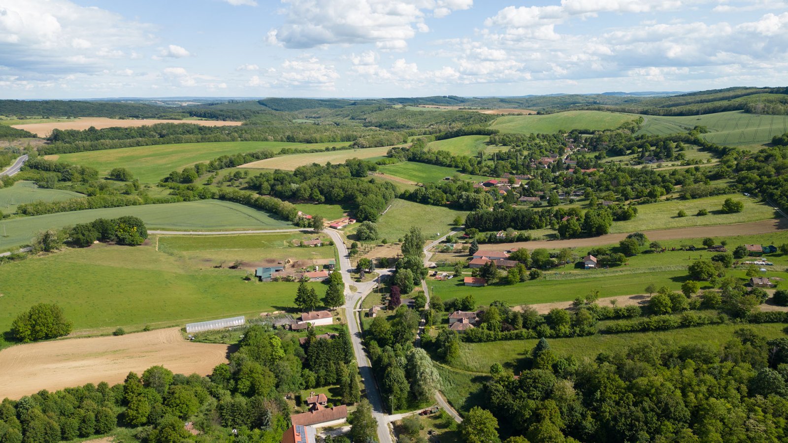 A körülbelül 3263 m²-es telken bőven van hely kertnek, játszótérnek, gyümölcsösöknek/ágyásoknak vagy egy csendes menedékhelynek. A vidéki elhelyezkedés kevés átmenő forgalmat és sok pihenést biztosít – mégis gyorsan elérhetők a régió központjai.