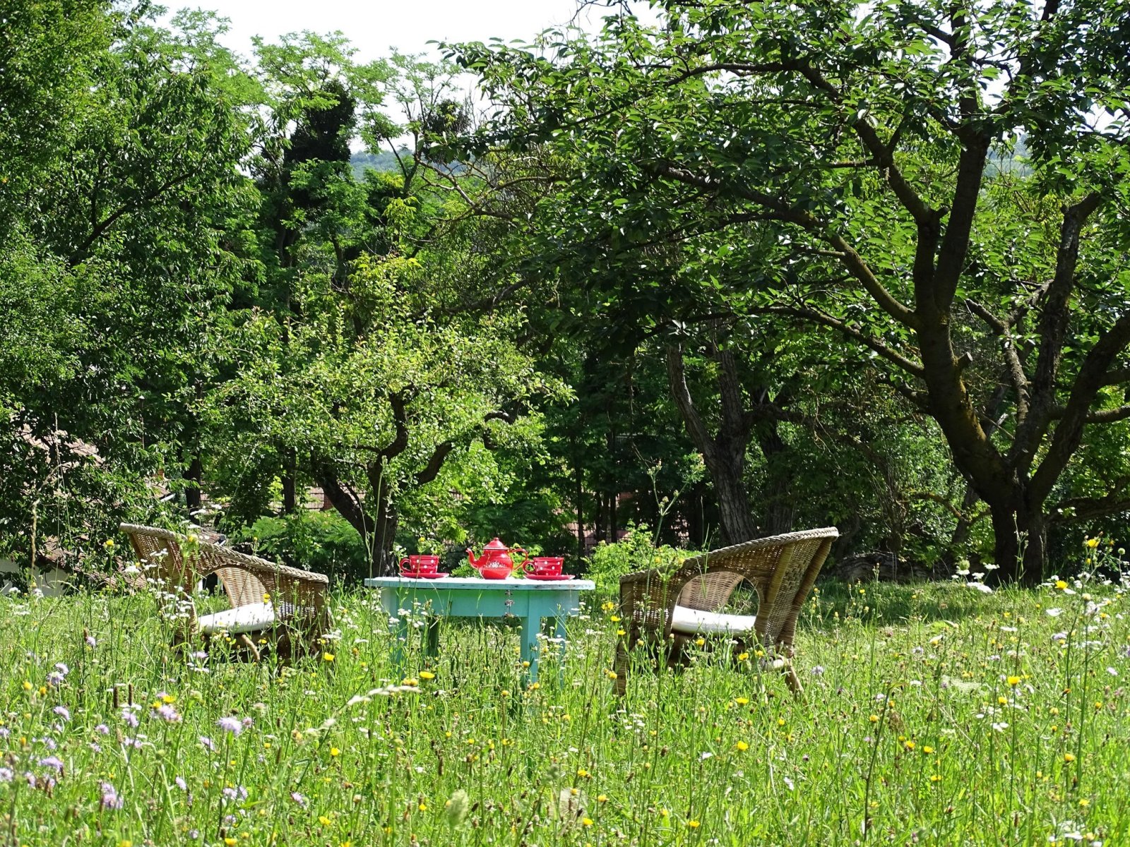 A körülbelül 5171 m²-es területen rengeteg hely áll rendelkezésre kertészkedéshez, gyümölcstermesztéshez és permakultúrához. A gyümölcsfák (alma, körte, cseresznye, meggy, szilva, dió) már jelen vannak; többek között zöldségágyásokat is ültettek. Paradicsommal, cukkinivel, padlizsánnal, paprikával, fizalisszal és kukoricával termesztik.
