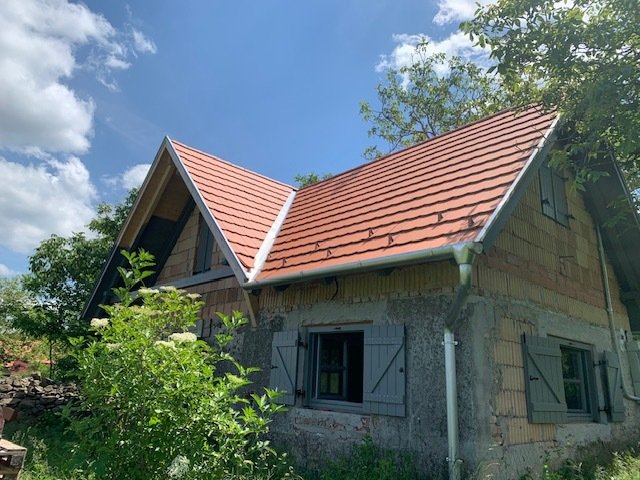 Maga a ház 40 négyzetméter alapterületű. Két emelettel és terasszal közel 100 négyzetméter lakóteret kínál. A tetőterasz gerendái már a helyükön vannak. A ház teljes lakhatóvá tételéhez még vakolás, burkolás és festés van hátra.