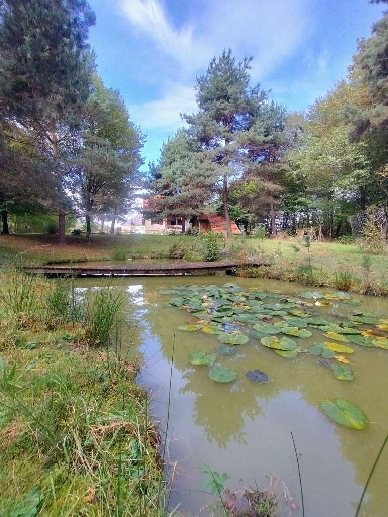A belsőépítészet, a bútorok és az egyéb építészeti elemek a hagyományos dekorációs elemekkel kombinálva egy igazán autentikus vidéki együttest alkotnak, ezért ez a gyöngyszem teljes bútorzattal eladó. A kerti tó alkalmas úszásra, a kertben található gyönyörű fenyőfák pedig hűs árnyékot adnak. Szezonban 10-15 különböző gombafajt is találhat a kertben.