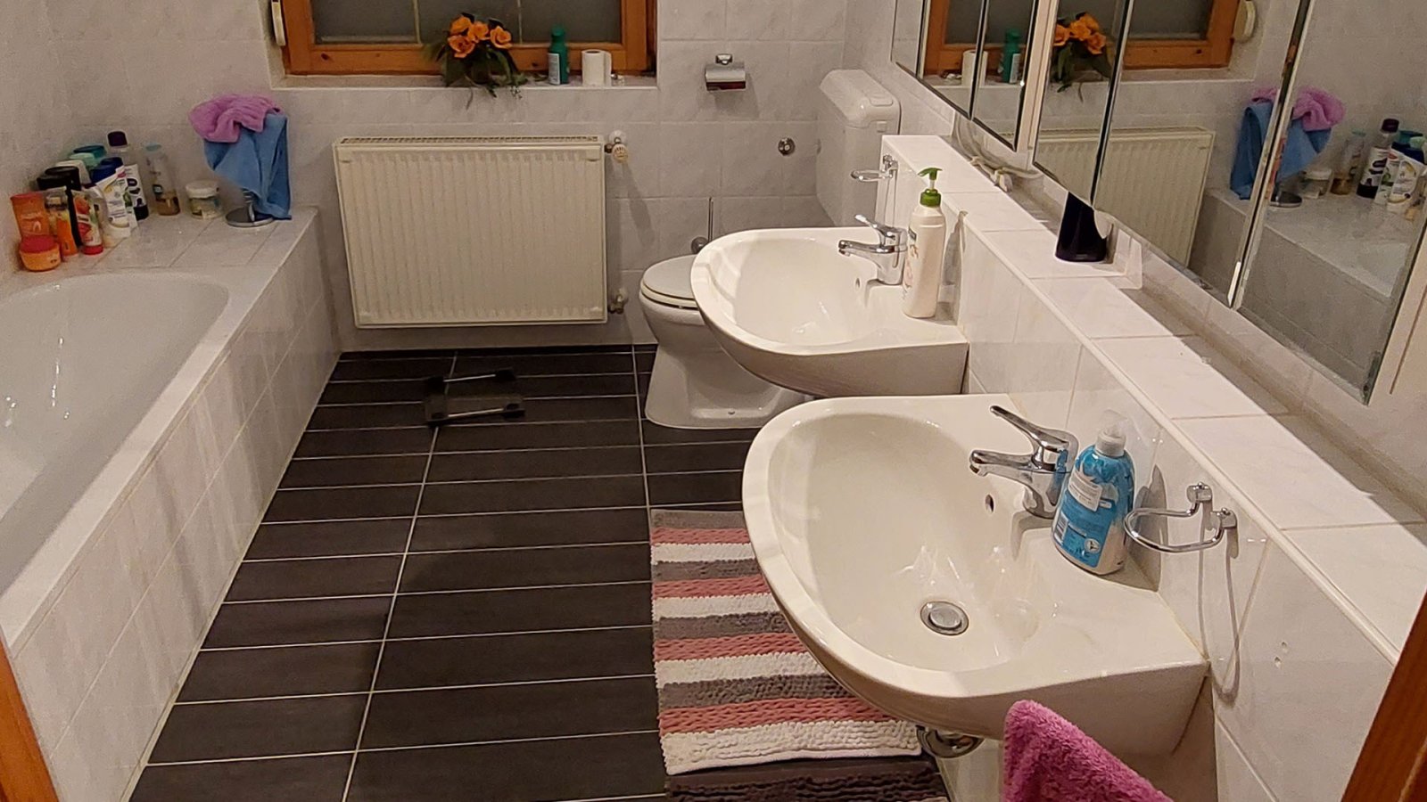 A fürdőszoba zuhanyzóval, fürdőkáddal és egy ablakkal van felszerelve, amely rengeteg természetes fényt biztosít. Képzelje el, hogy a kádban pihen, miközben a fény lágyan beáramlik az ablakon.