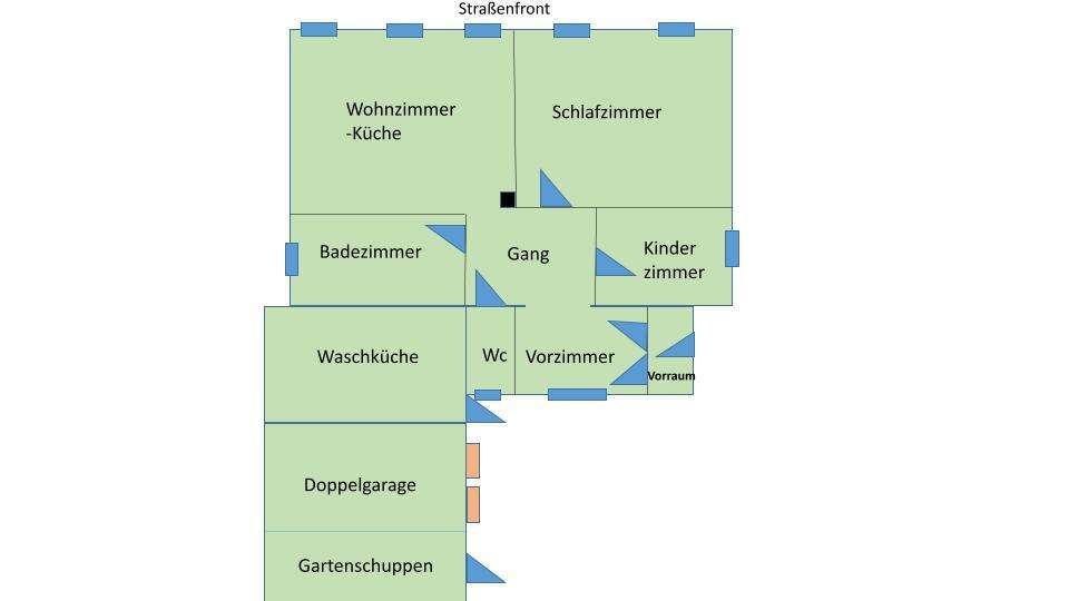 A telek hátsó részén egy kis kerti kapu található, amely egy földútra vezet. Mögötte mezők találhatók, és a Raab folyó körülbelül 1 km-re folyik.