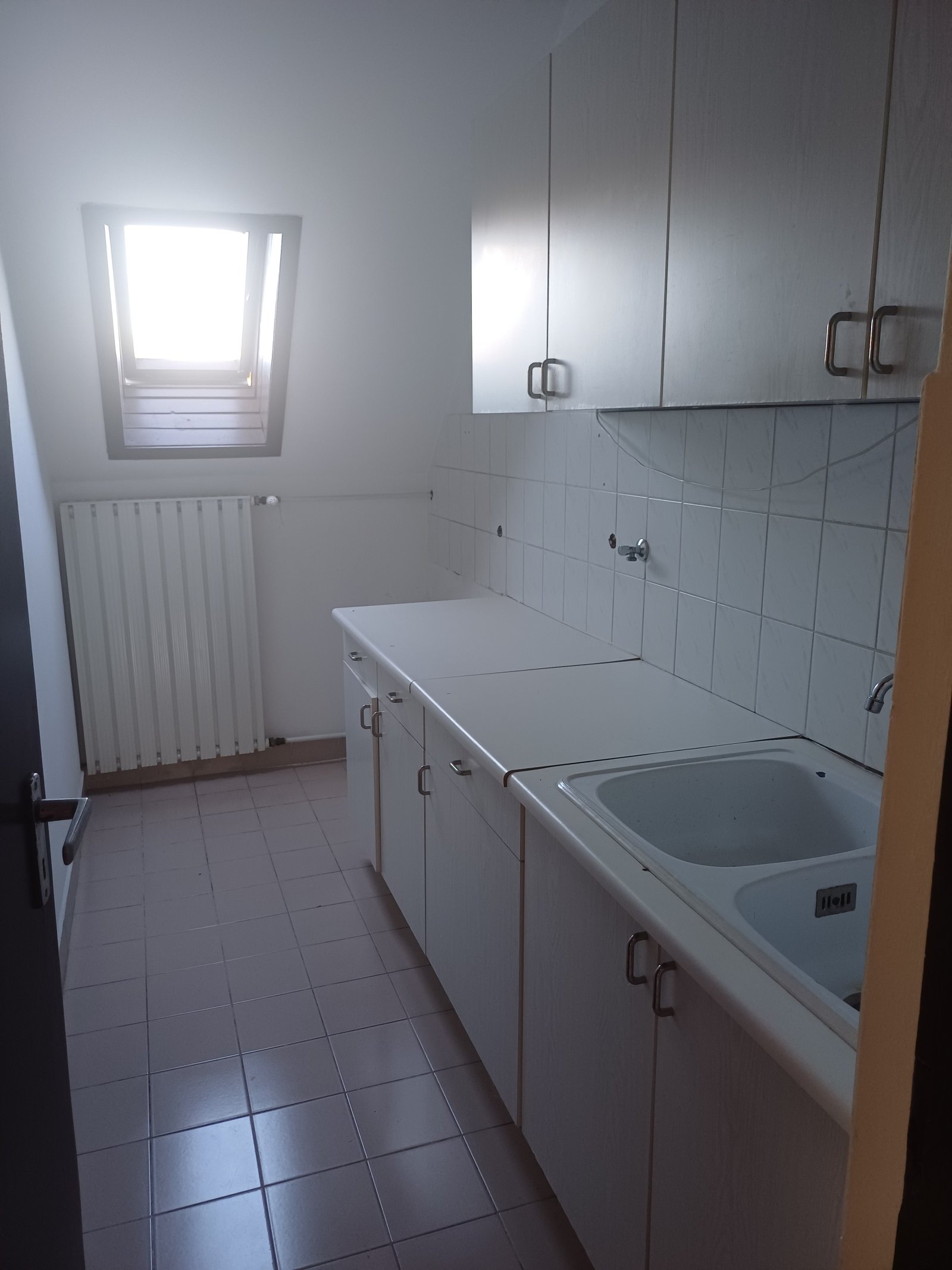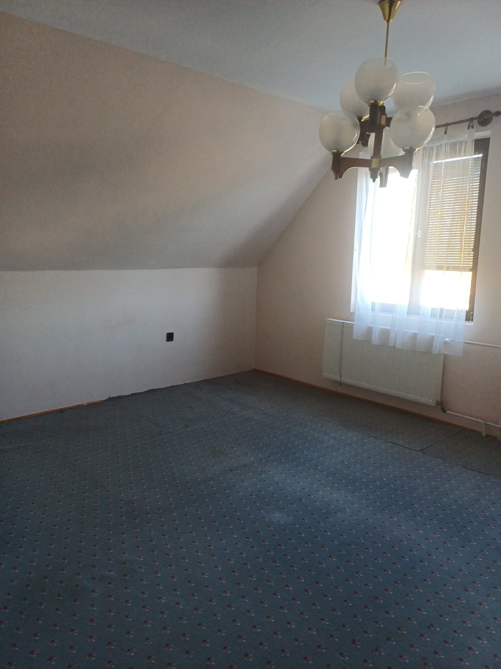 Az emeleten három hálószoba, egy nappali/étkező konyhával és erkéllyel, egy fürdőszoba WC-vel és egy tároló található. A szobák parketta vagy laminált padlóval borítottak, a folyosók járólapozottak.