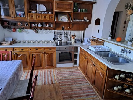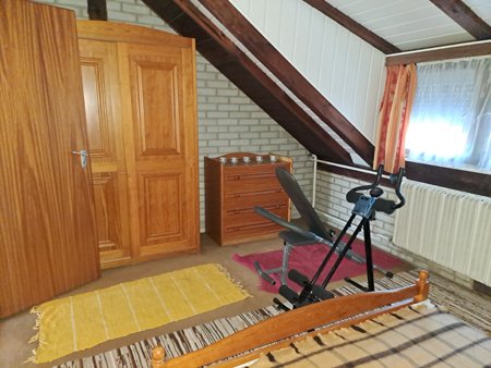 Ez a jól karbantartott családi ház az 1990-es években épült, és egy gyönyörűen parkosított 732 m²-es kerttel rendelkezik. A ház fűtését gáz központi fűtés és vegyes kazán biztosítja.