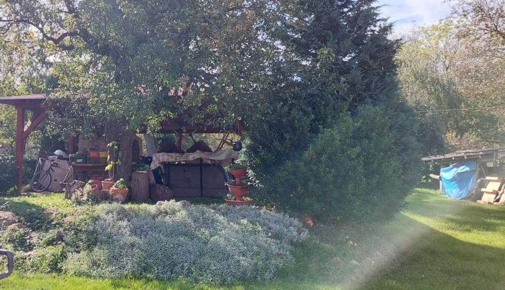 A kertben alma-, dió-, szilva-, körte-, füge-, málna- és szederfák találhatók.