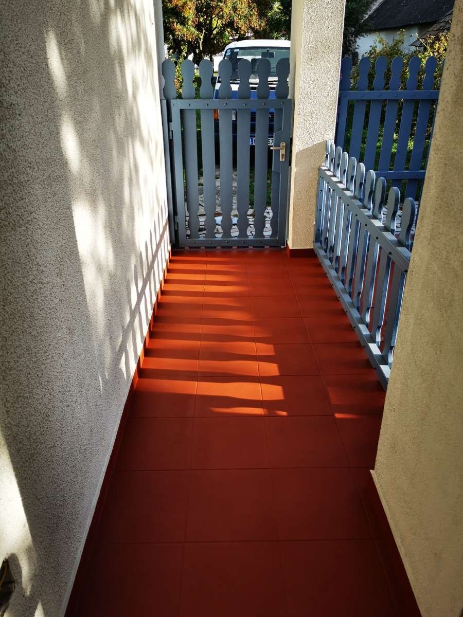 A kerítés, az ablakok és a külső ajtók frissen lettek festve.