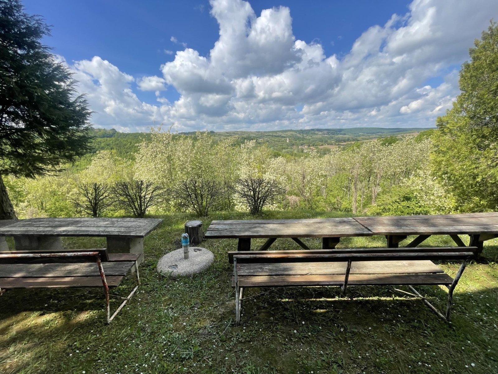 A telken található egy kis fából készült kerti fészer és egy panorámás terasz is.