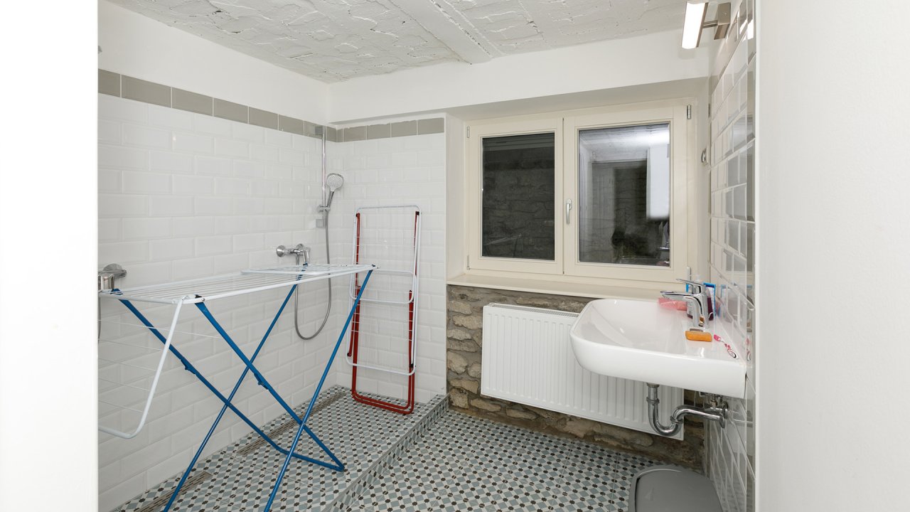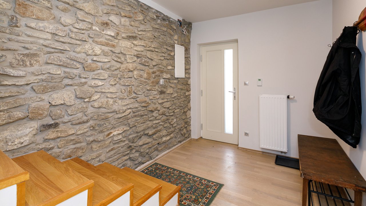 Het stenen huis heeft in totaal 4 slaapkamers, 2 keukens, 4 badkamers, 3 woonkamers en 2 extra kamers, verdeeld over 3 verdiepingen.